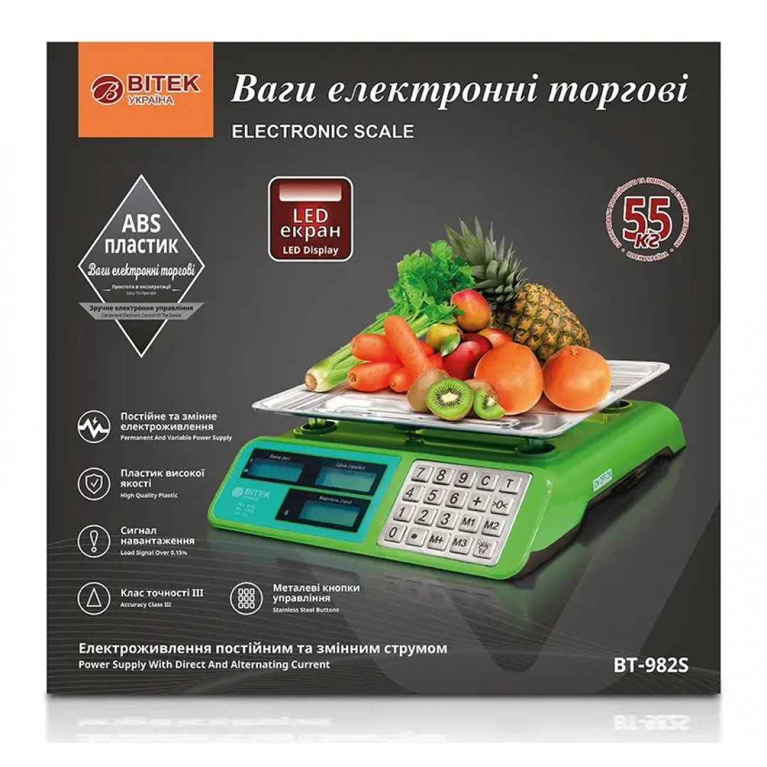 Электронные торговые весы 55 кг BITEK BT-982S с металлическими кнопками