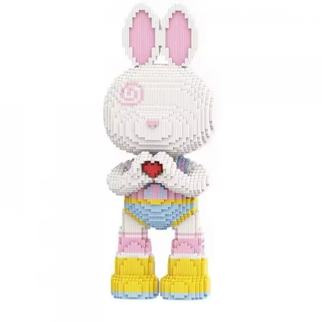 Очаровательный конструктор для создания фигурки милого зайчика, держащего красное сердечко. Модель выполнена из микро-блоков с детальной проработкой элементов и мягкой цветовой палитрой. Отлично подойдёт в качестве подарка или декоративного элемента интерьера.
