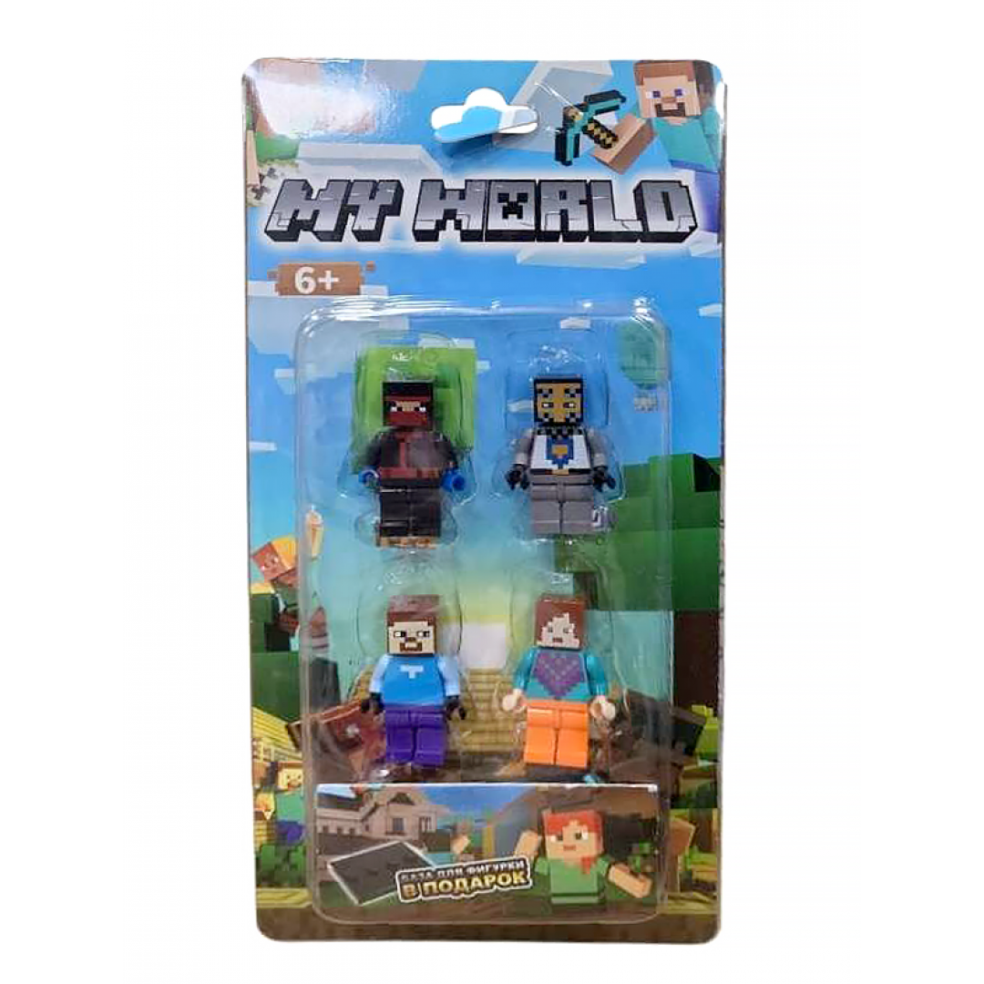 Игровой набор My World — коллекция мини-фигурок в стиле LEGO, созданная по мотивам легендарной игры Minecraft. Четыре персонажа помогут ребёнку воссоздать любимые сцены, строить миры и придумывать собственные истории.