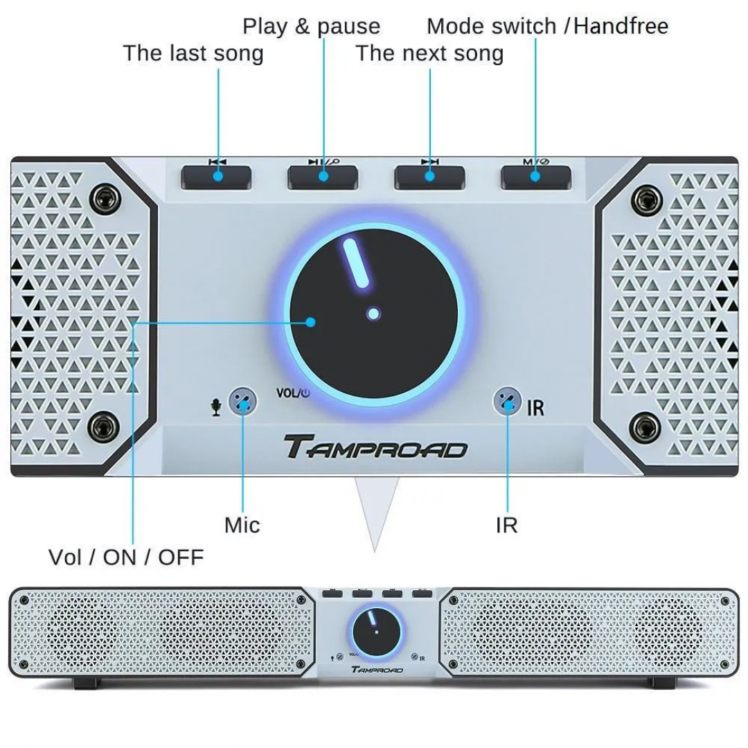 Разнообразие режимов — Bluetooth, TF-карта, AUX и FM-радио легко переключаются одним нажатием.