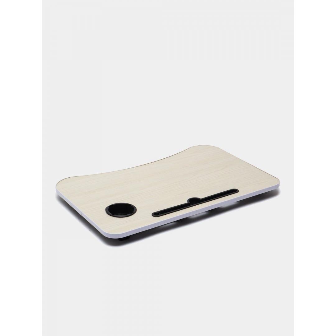 Компактный деревянный столик для ноутбука с встроенной подставкой станет отличным решением для работы, учёбы или отдыха. Углубление с фиксатором надёжно удержит планшет или смартфон, а встроенный подстаканник позволит наслаждаться напитком, не беспокоясь о случайных проливах.