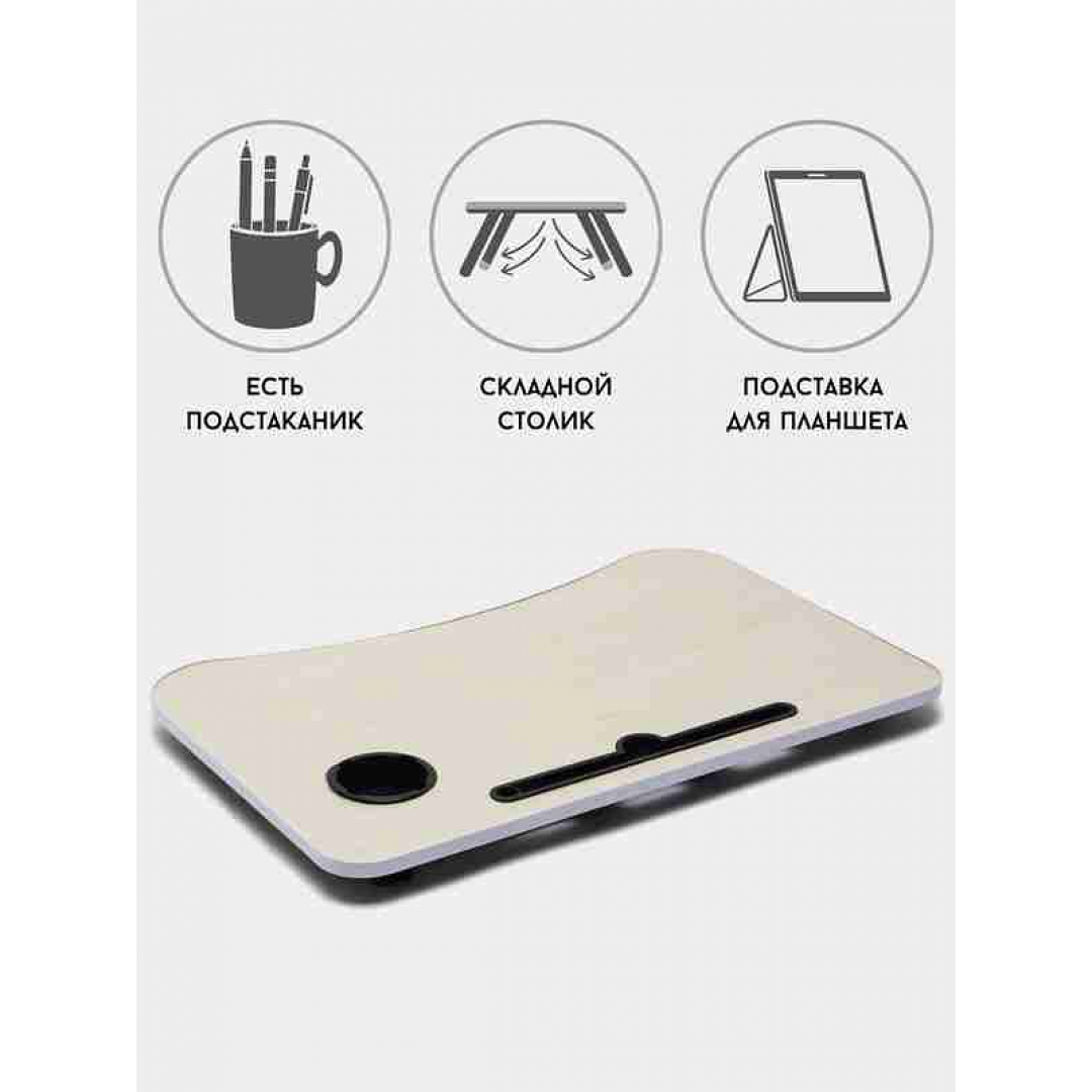 Благодаря противоскользящим ножкам, столик устойчиво размещается на любой поверхности: кровати, диване, ковре. Идеален как для дома, так и для офиса или выездной работы.