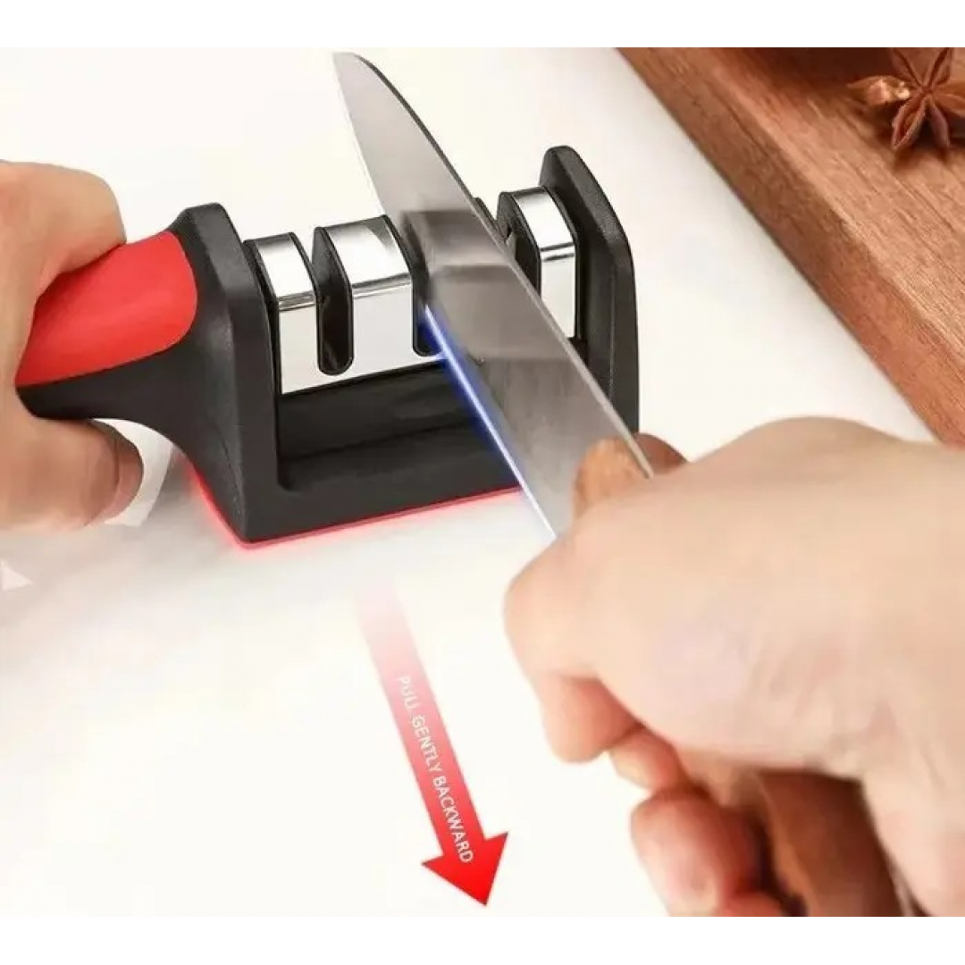 Точилка для ножей YD-168 — удобное и практичное устройство, позволяющее быстро и безопасно затачивать кухонные ножи. Благодаря трёхступенчатой системе заточки она обеспечивает как грубую обработку, так и финишную доводку, что позволяет поддерживать ножи в идеальном состоянии.