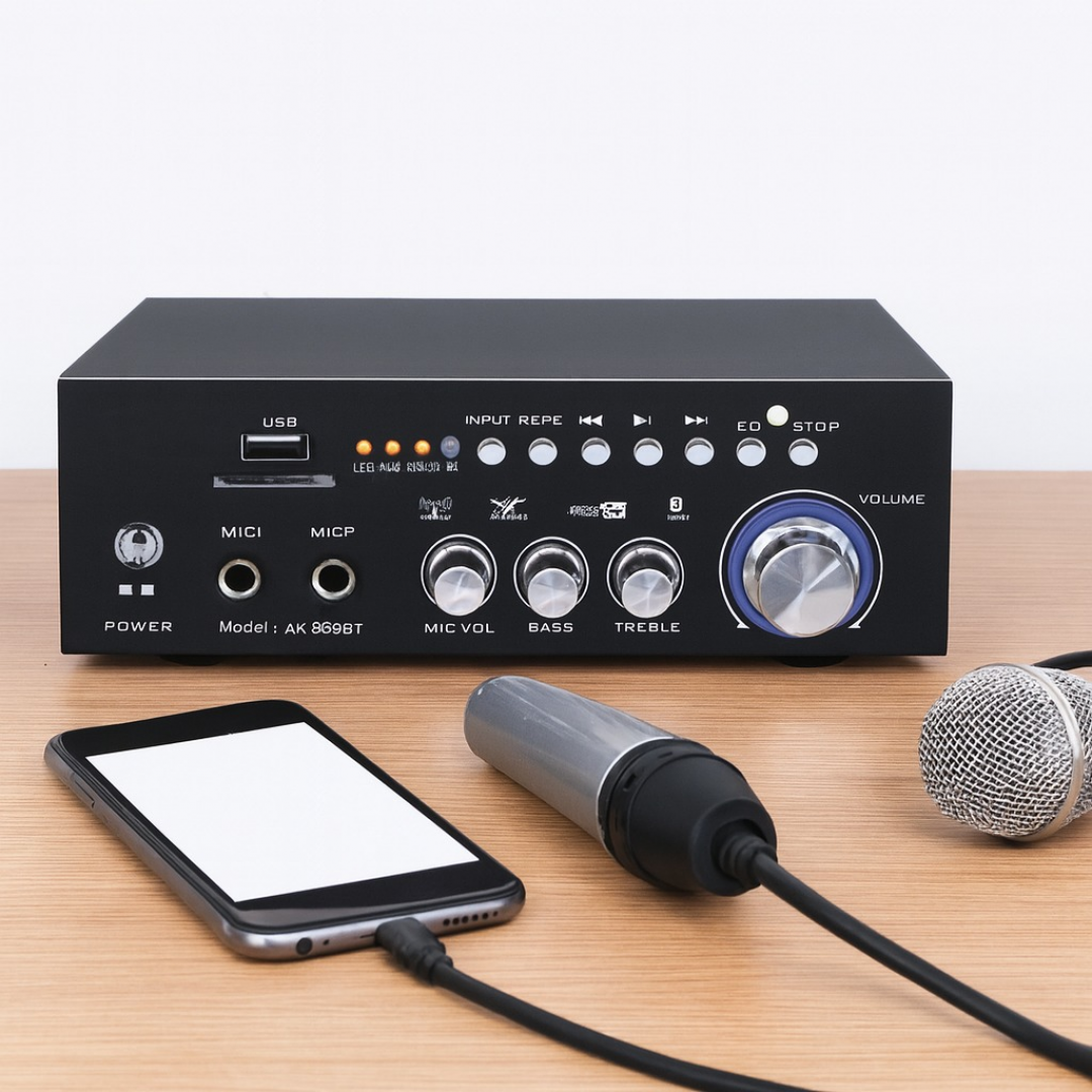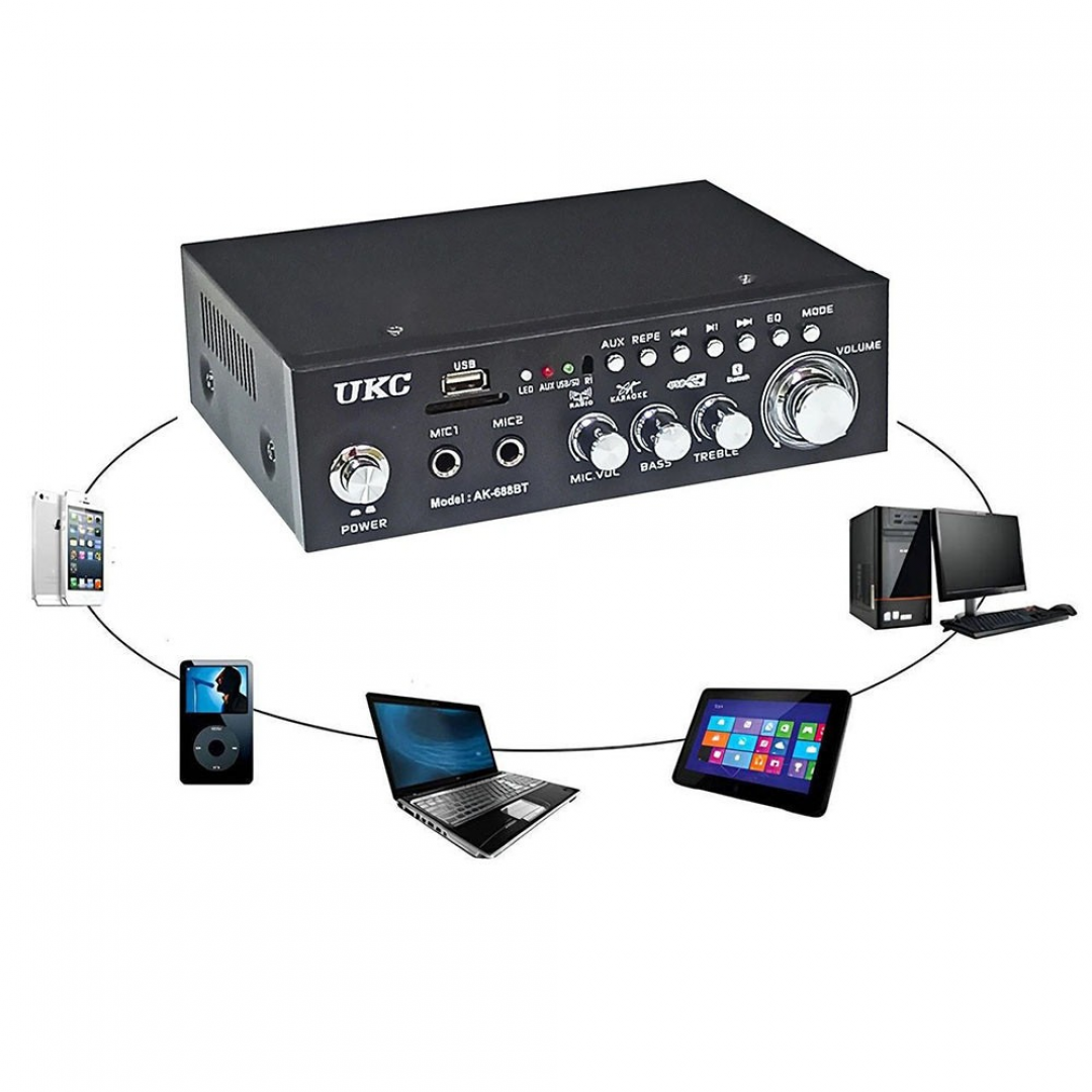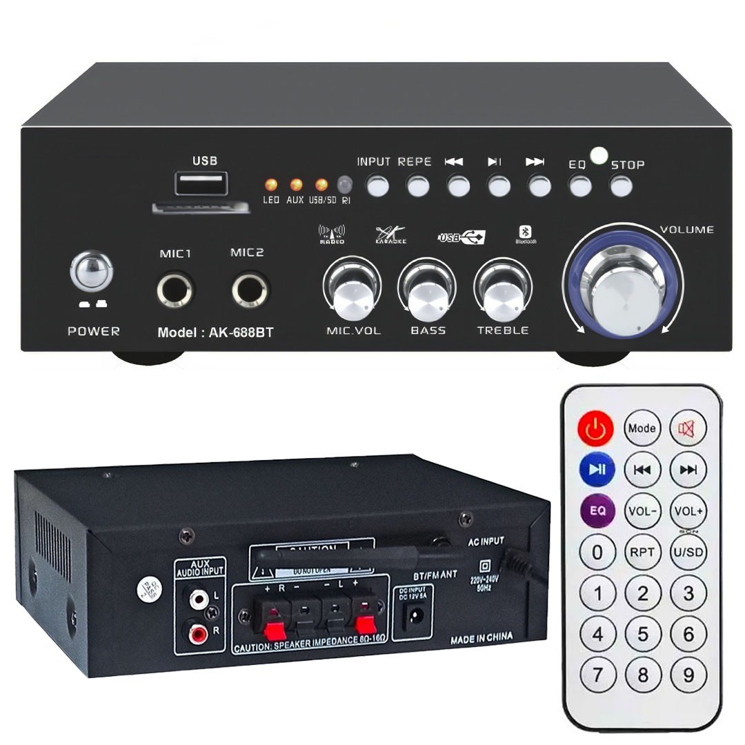 Усилитель AMP 688 BT 2CH создан для тех, кто ценит качественный и насыщенный звук. Этот компактный двухканальный усилитель позволяет полностью раскрыть потенциал вашей аудиосистемы, обеспечивая мощность и чистоту звучания. Технология Bluetooth обеспечивает удобное беспроводное подключение смартфона, планшета или ноутбука для потоковой передачи музыки без потери качества.