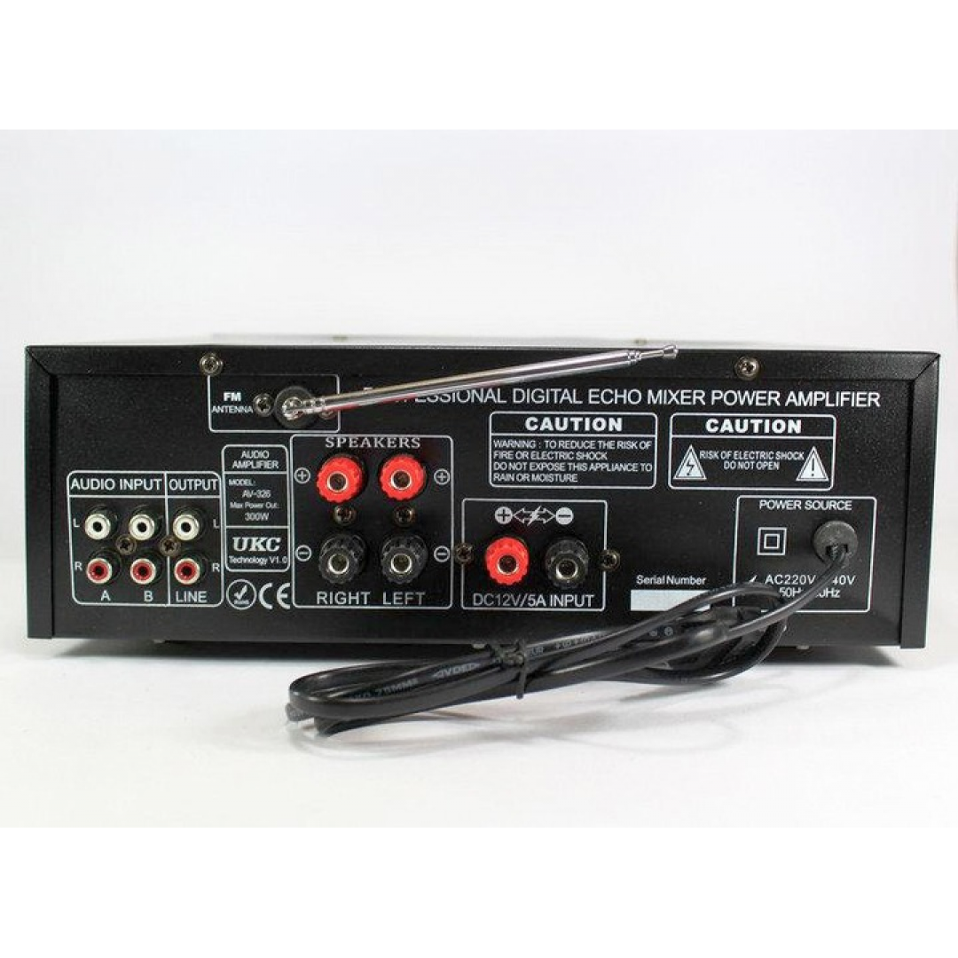 Усилитель UKC AV-326BT 3295 — это универсальное устройство для воспроизведения и усиления музыки с компьютеров, мобильных телефонов, MP3/MP4-плееров и других аудиоустройств. Благодаря компактным размерам и широким возможностям подключения он отлично подходит для использования дома, на даче или в автомобиле.
