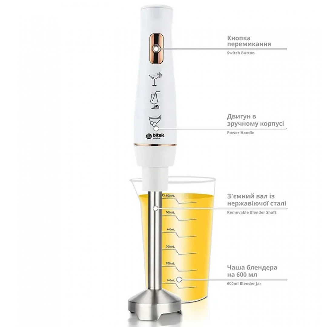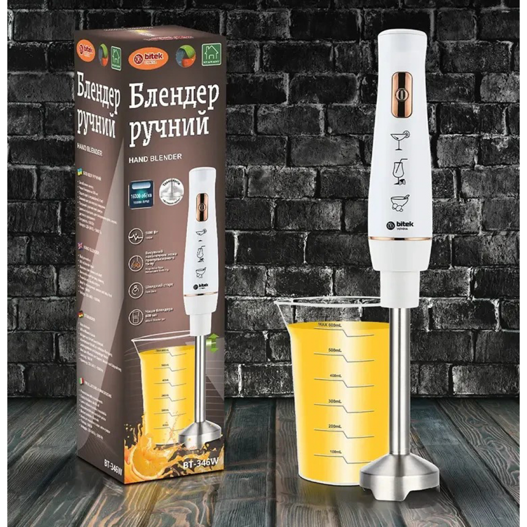 Ручной блендер BITEK BT-346W с чашей, 1600 Вт, 600 мл, 1 скорость