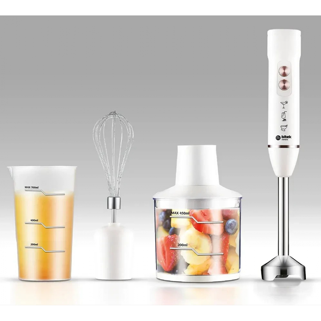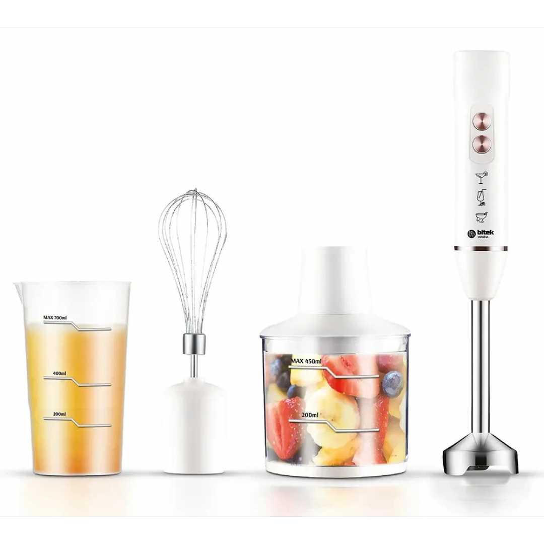 Блендерный набор BITEK BT-272W – это многофункциональное решение для кухни, которое объединяет в себе мощность, удобство и практичность.
