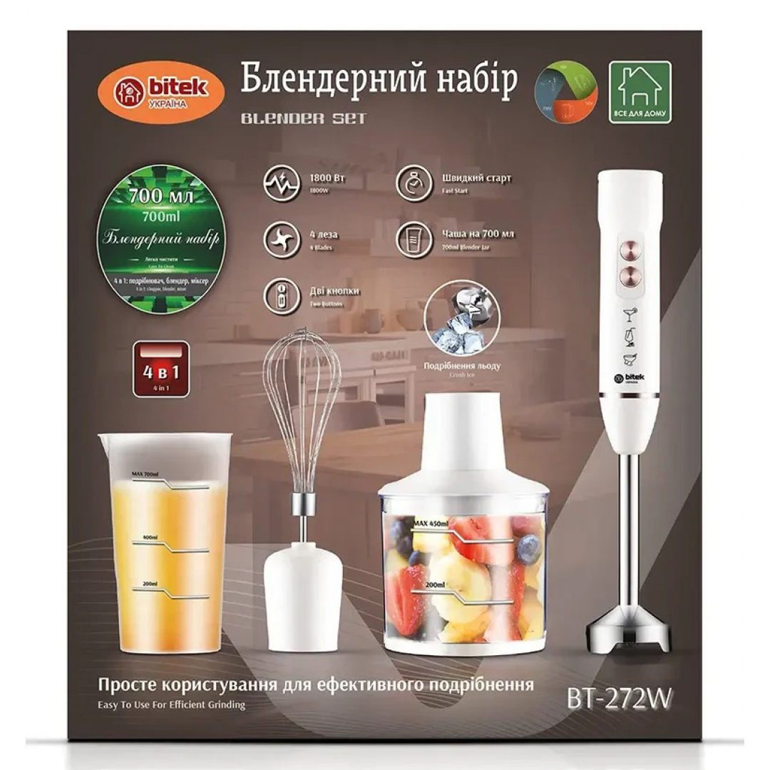Блендерный набор 4 в 1 BITEK BT-272W, 1800 Вт