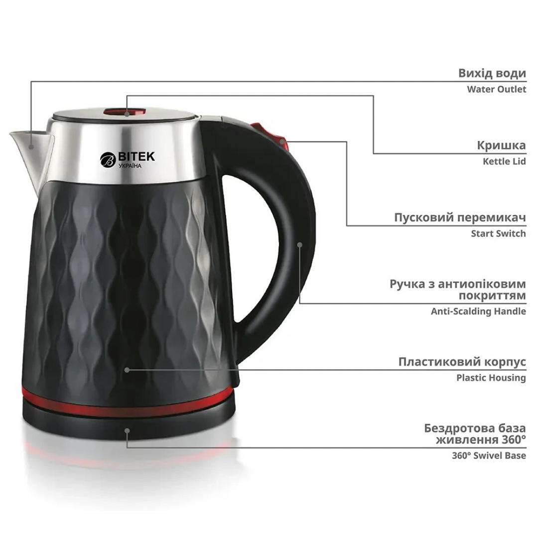 Электрический чайник BITEK BT-7931, 2,0 л, 2000 Вт