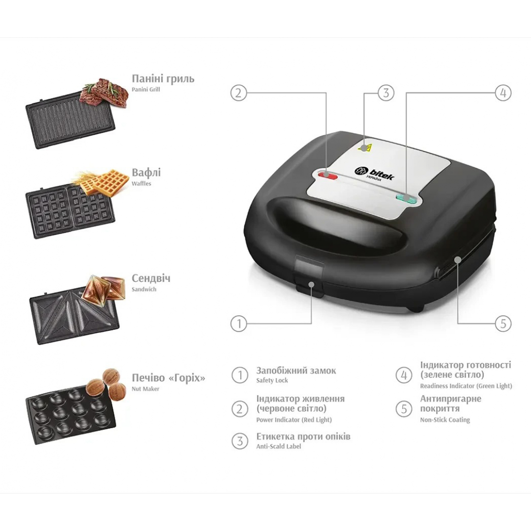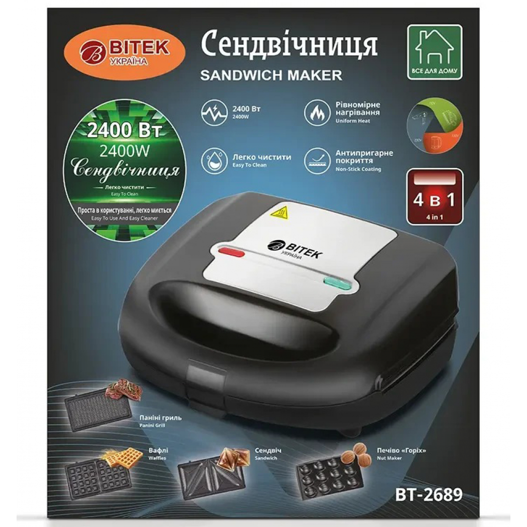 Сэндвичница BITEK BT-2689, 2400 Вт, 4 в 1
