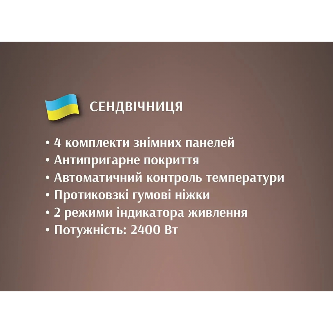 Универсальность: 4 съемные формы (орешки, вафли, сэндвичи, панини-гриль)