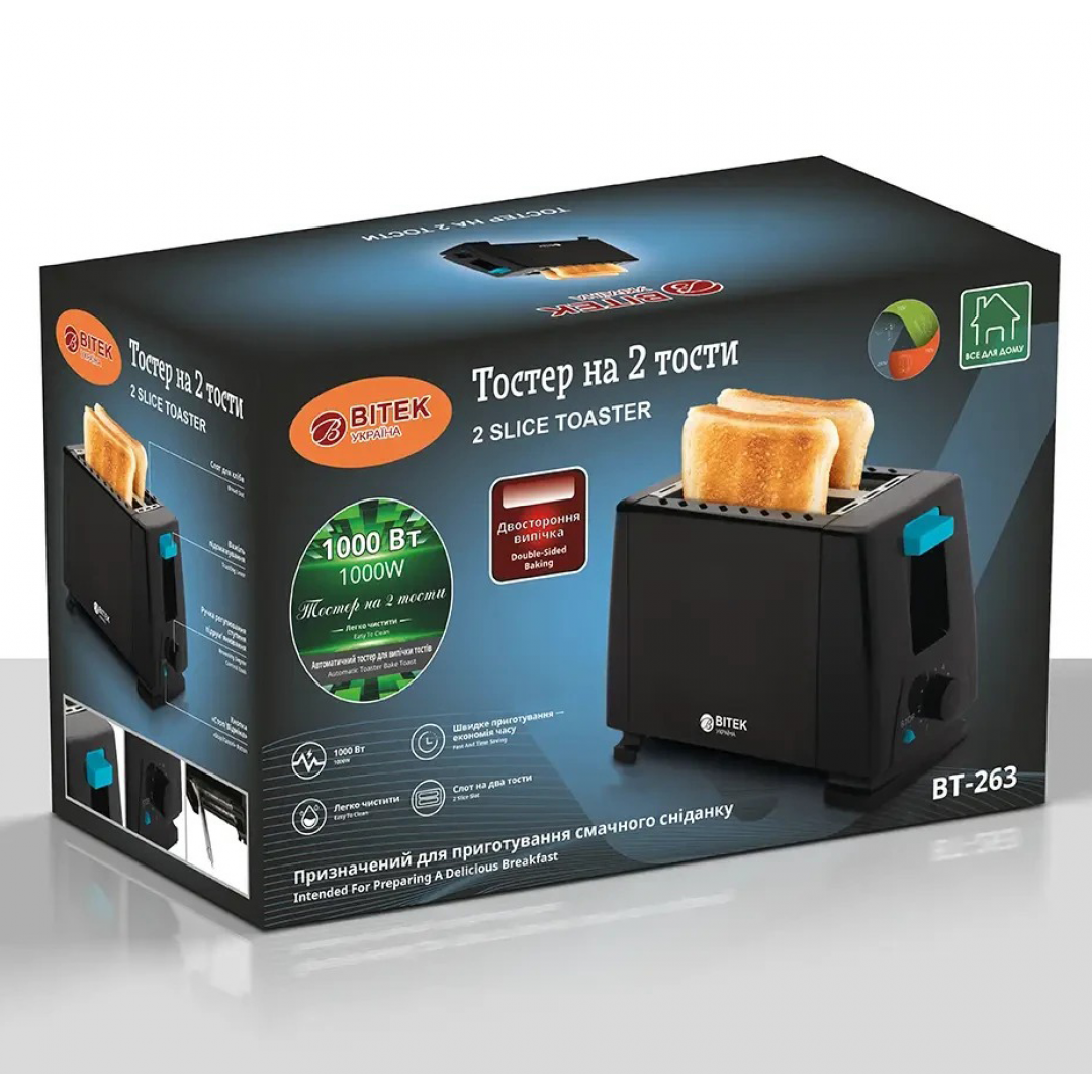 Тостер на 2 тоста 1000Вт BITEK BT-263