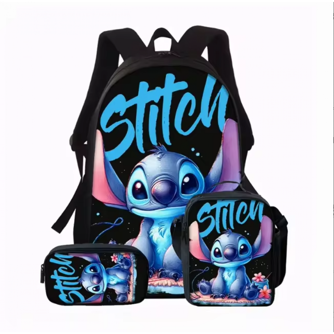 Набор из трёх предметов с ярким дизайном персонажа Stitch. Комплект состоит из вместительного рюкзака, небольшой сумки и пенала. Подходит для школы, прогулок, поездок и повседневного использования.
