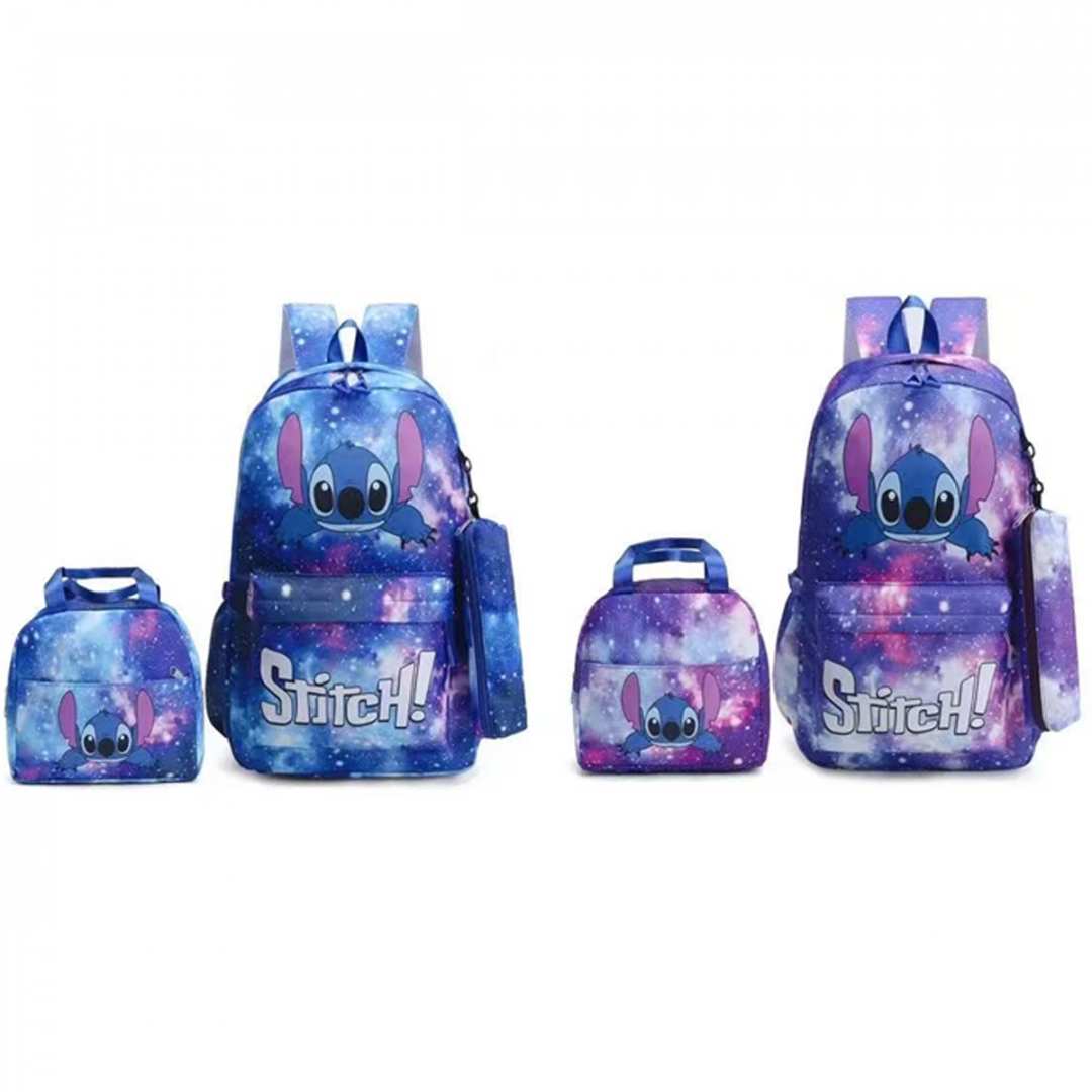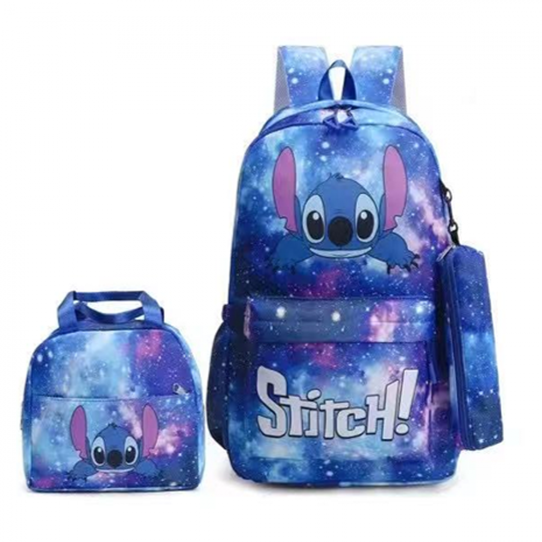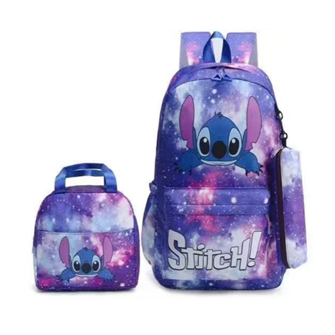 Набор из трёх предметов с космическим дизайном и изображением Стича. В комплект входят рюкзак, сумка и пенал. Практичный вариант для школы, прогулок и повседневного использования. Изготовлен из прочной ткани оксфорд, устойчивой к влаге и износу.