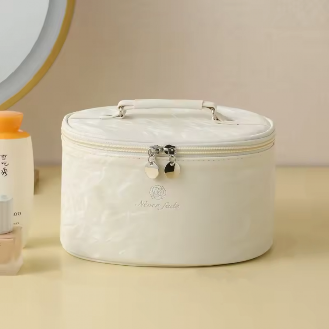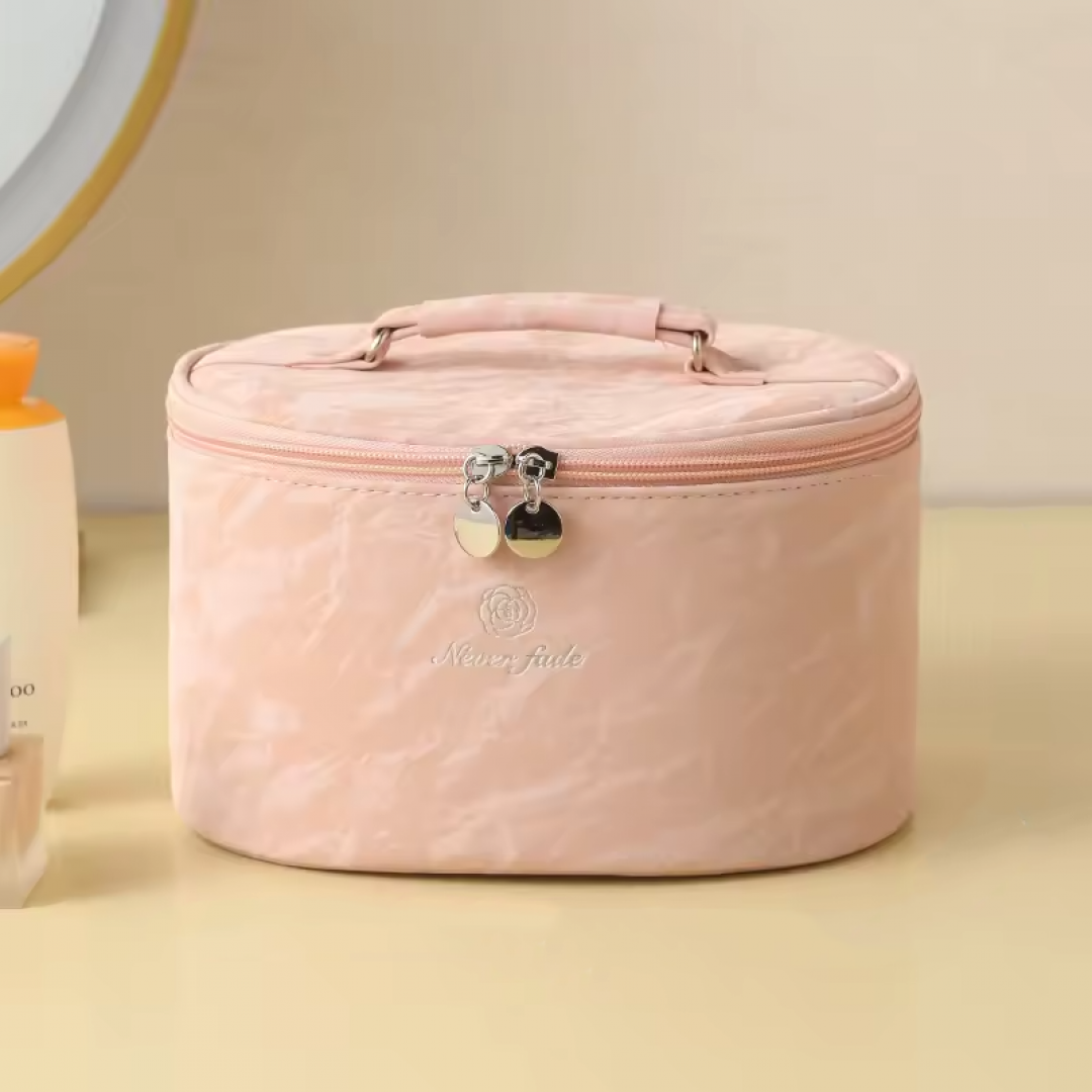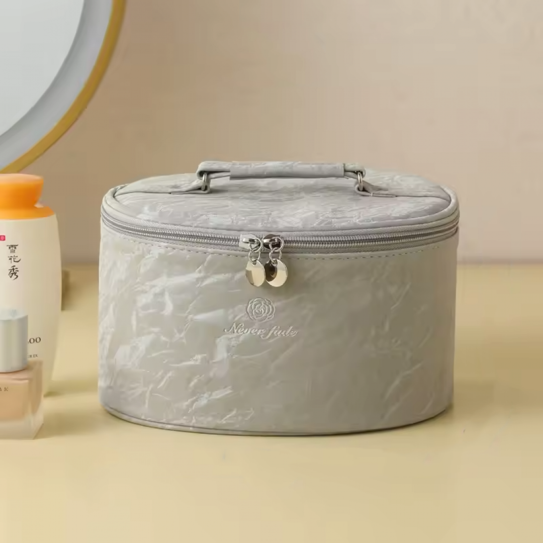 Универсальная и стильная косметичка овальной формы с мягкой текстурой и надписью Never Fade. Идеально подходит для хранения косметики, аксессуаров и средств по уходу. Благодаря прочному материалу и продуманной внутренней организации косметичка станет удобным спутником дома и в путешествиях.