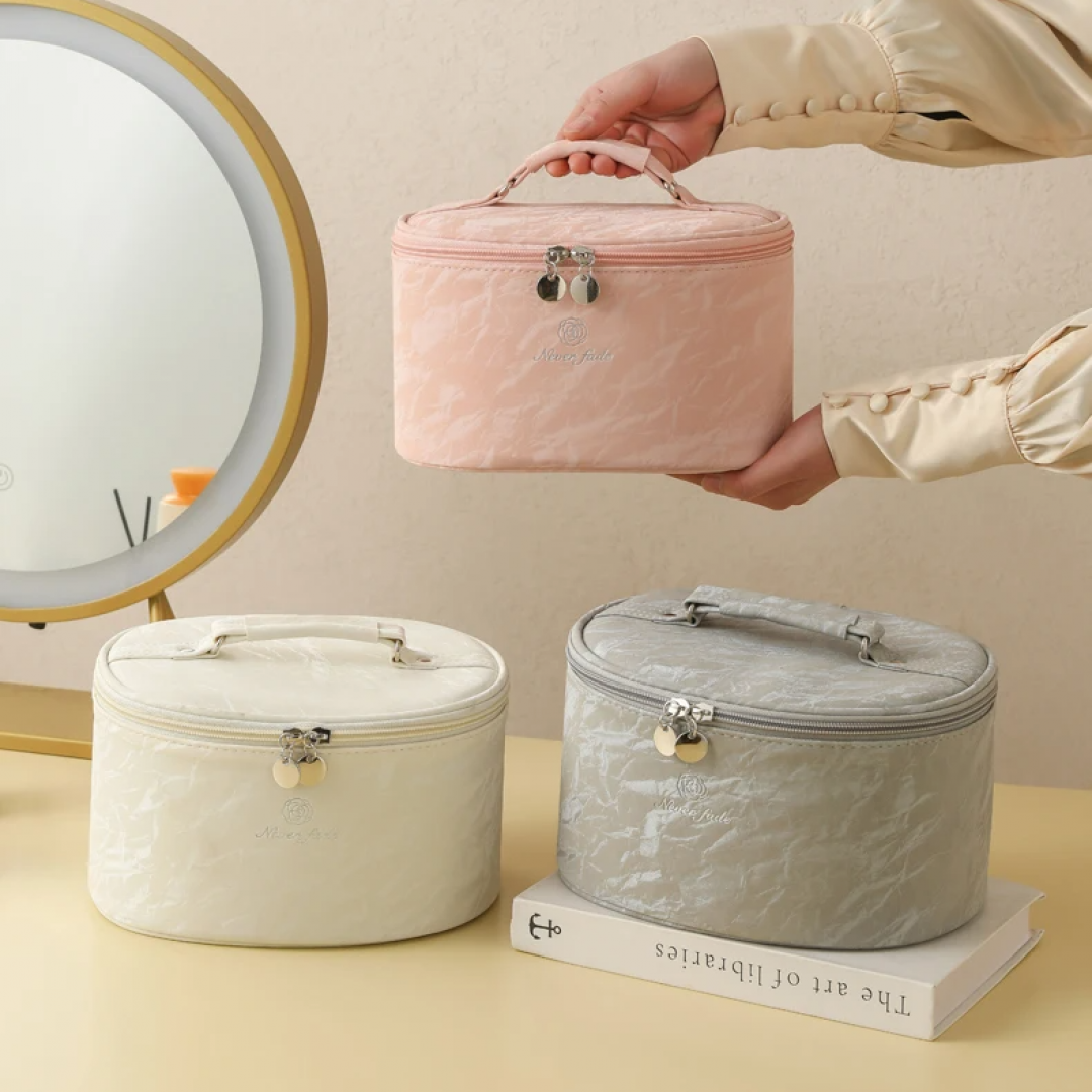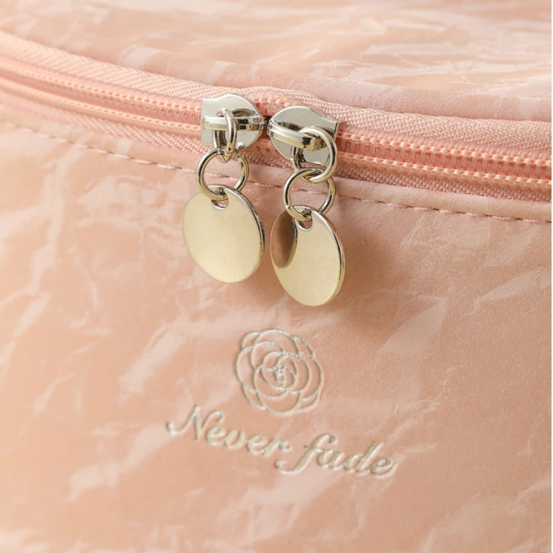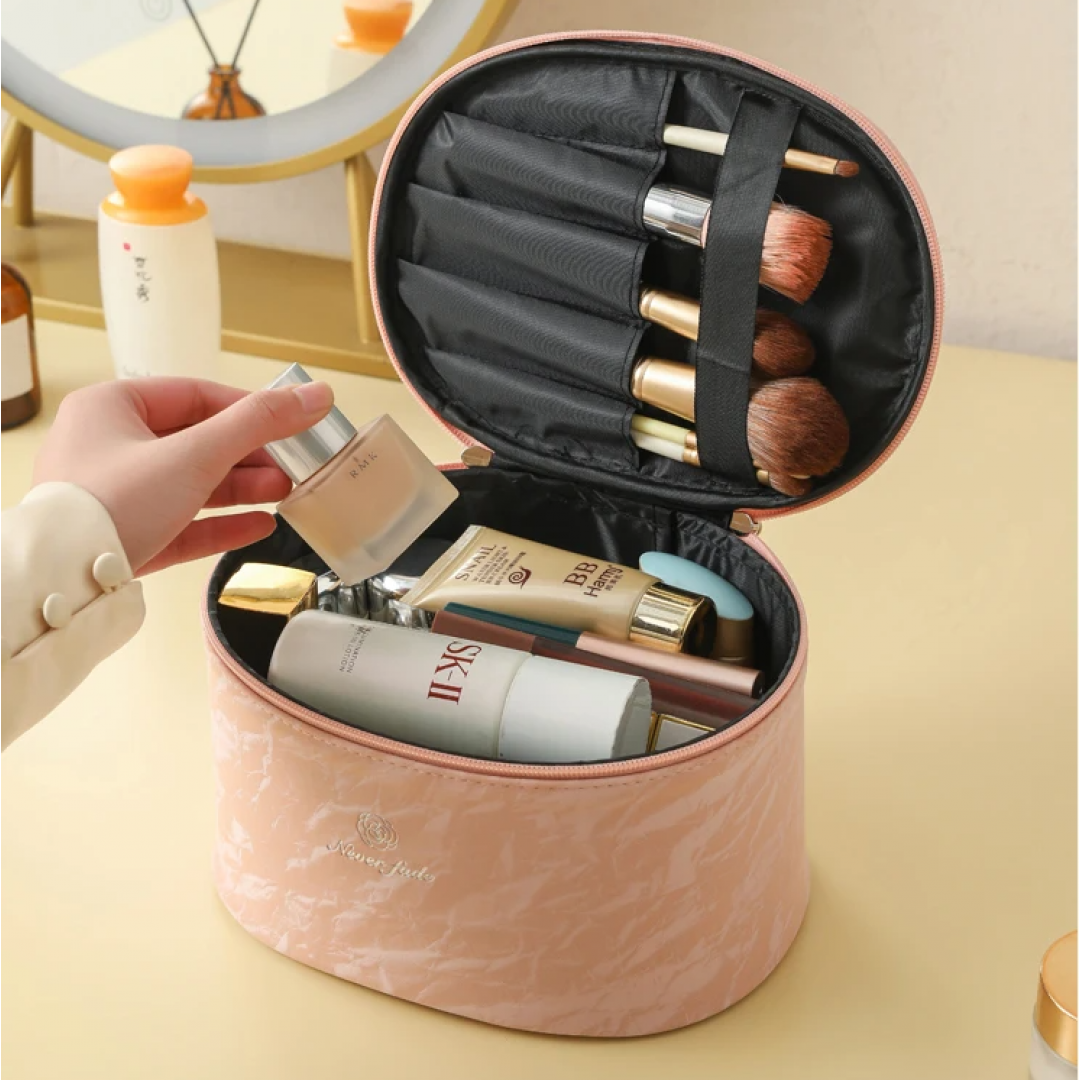 Универсальная и стильная косметичка овальной формы с мягкой текстурой и надписью Never Fade. Идеально подходит для хранения косметики, аксессуаров и средств по уходу. Благодаря прочному материалу и продуманной внутренней организации косметичка станет удобным спутником дома и в путешествиях.