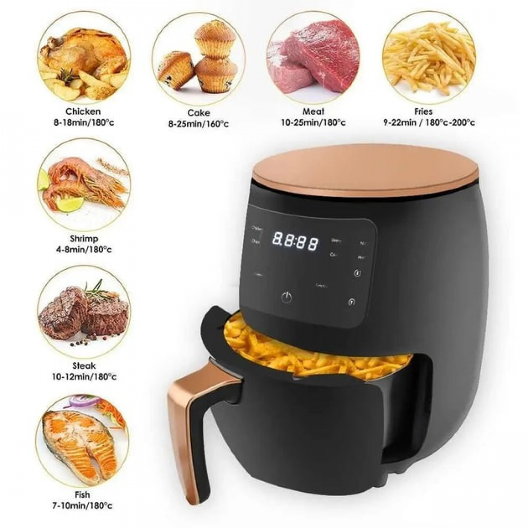 Безмасляное приготовление — технология циркуляции горячего воздуха делает блюда хрустящими снаружи и сочными внутри, минимизируя количество жира и калорий.