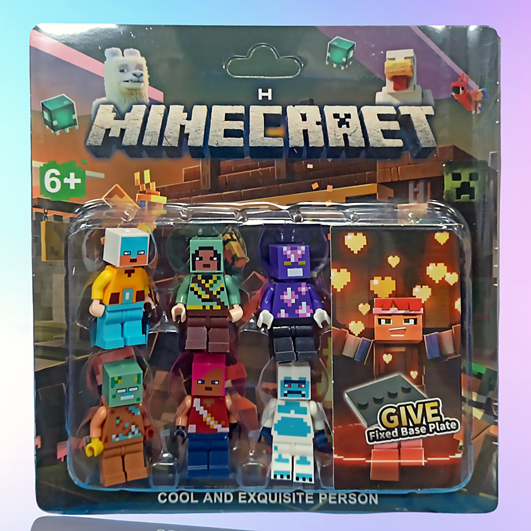 Игровой набор мини-фигурок по мотивам популярной игры Minecraft. В комплект входят 6 героев, выполненных в фирменном пиксельном стиле. Каждая фигурка имеет подвижные части и может использоваться для коллекционирования или сюжетных игр.