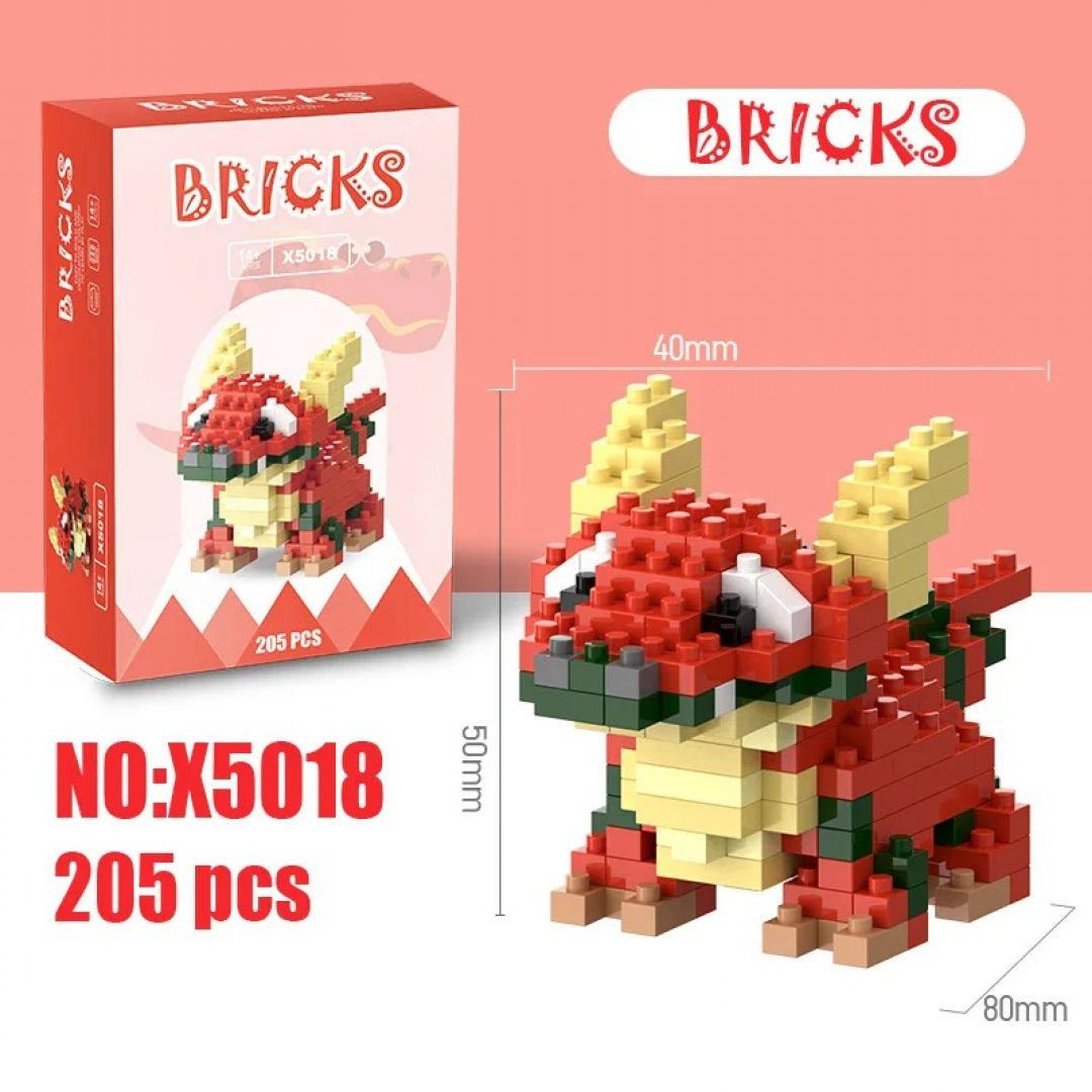 Конструктор Mini Bricks X5018 — это увлекательный набор мини-блоков, из которых собирается яркий красный дракон с выразительными глазами, крыльями и хвостом. Несмотря на компактный размер, модель выглядит детализированно и реалистично, что делает её отличным элементом коллекции мини-фигурок или подарком для любителей фэнтези.