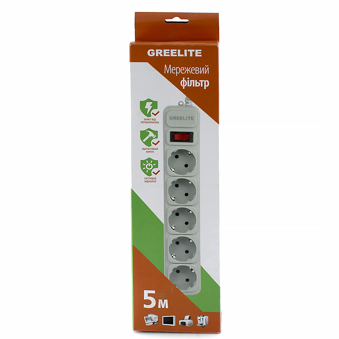 Сетевой фильтр GRELITE SP5, 5 розеток, 5 м, черный/белый