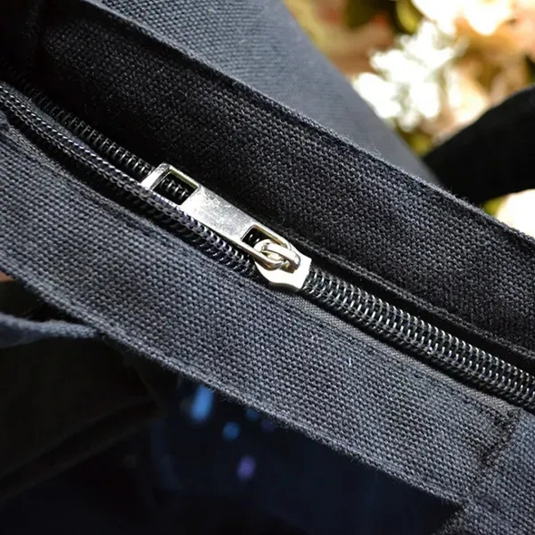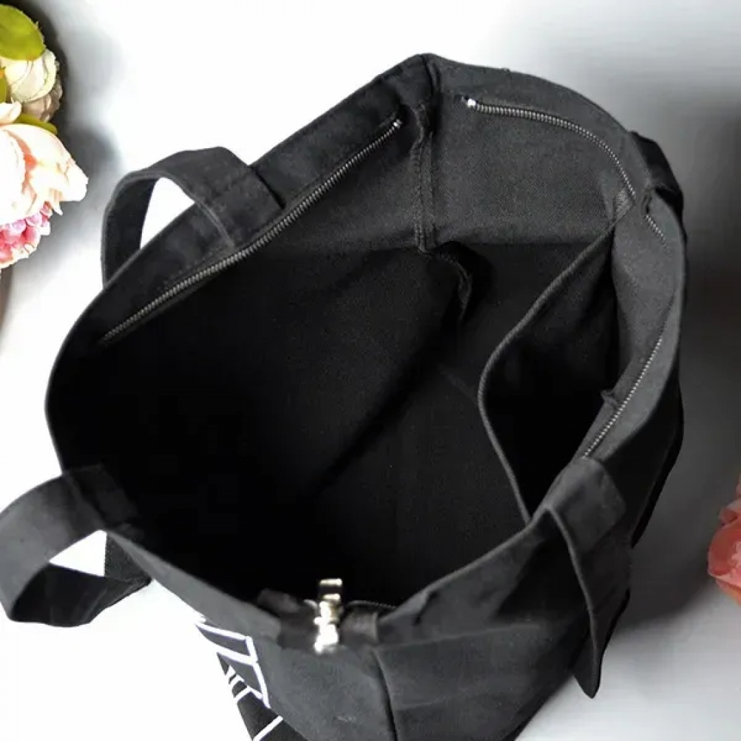 Чёрный шоппер 24-475 на молнии с карманом 40х34 см