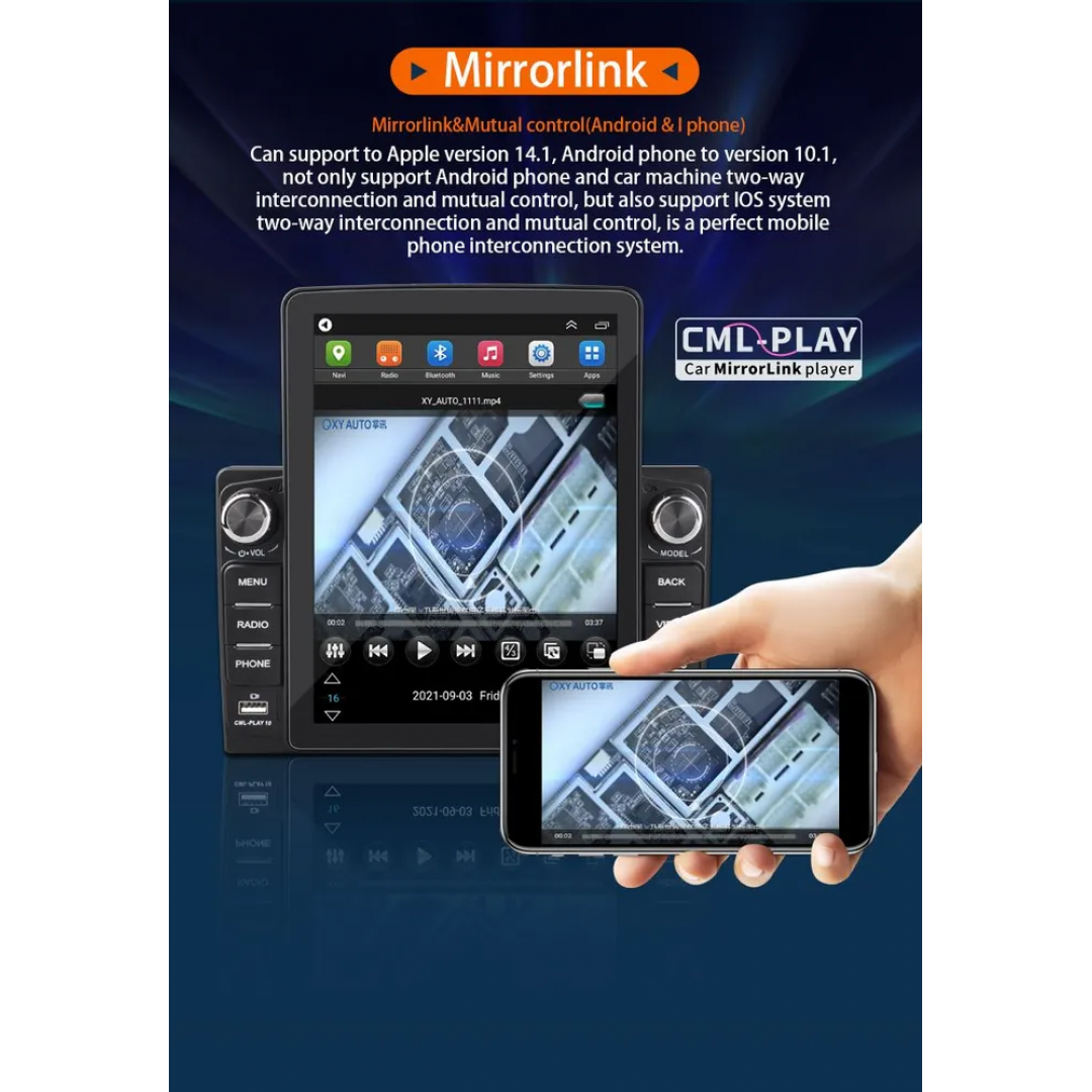 Автомобильная мультимедийная система 9582A с вертикальным 9,5-дюймовым сенсорным дисплеем, мощной начинкой Android, поддержкой CarPlay/Android Auto, GPS, Wi-Fi, Bluetooth и камерой заднего вида. Создана для удобства, безопасности и комфорта в дороге.