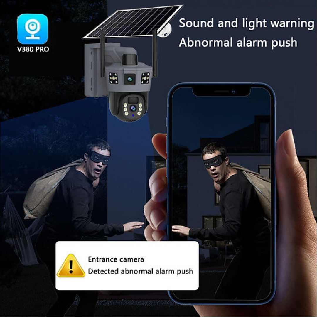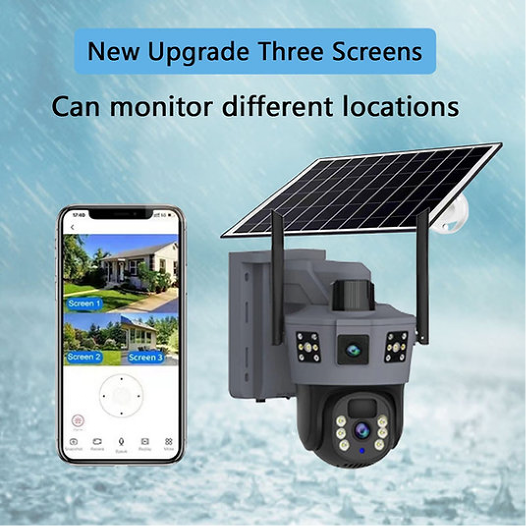 Уличная поворотная 4G-камера видеонаблюдения с солнечной панелью, 3 линзы SD 35-4G