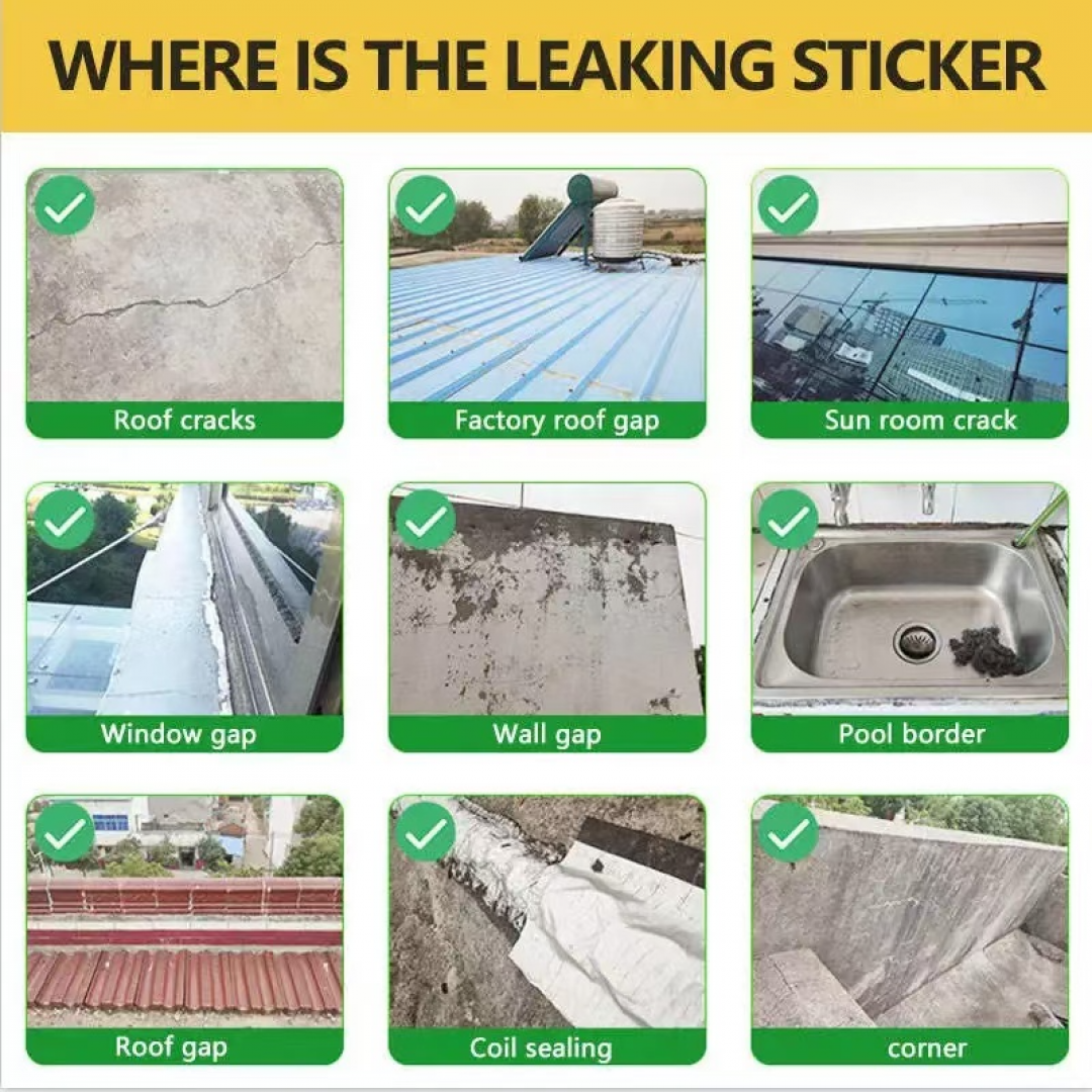 Алюминиевый верхний слой защищает место герметизации от ультрафиолета и атмосферных воздействий, а слой бутил-каучука обеспечивает плотное сцепление и эластичность. Лента используется для ремонта кровли, оконных стыков, водостоков, труб, щелей и других участков, подверженных проникновению влаги.