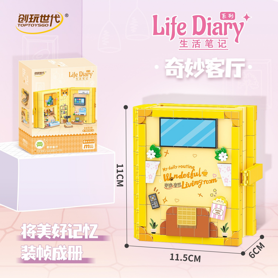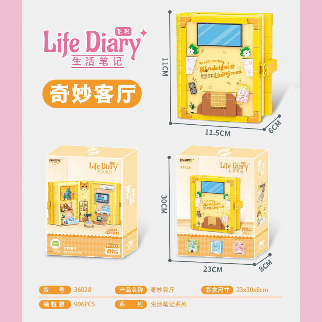 Конструктор представляет собой сборную модель гостиной в формате раскрывающейся книжки из серии Life Diary. В закрытом виде модель выполнена как декоративный «альбом», а при раскрытии превращается в детализированное жилое пространство с несколькими функциональными зонами.