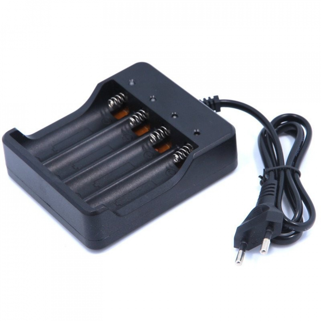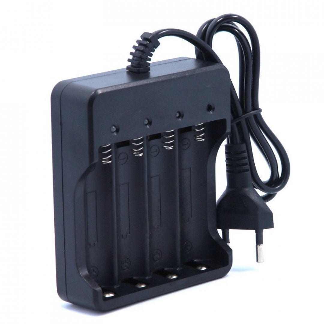Зарядное устройство предназначено для зарядки литий-ионных аккумуляторов формата 18650 и поддерживает одновременную установку от одного до четырёх аккумуляторов. Устройство рассчитано на стабильную работу в широком диапазоне входного напряжения и подходит для бытового использования.