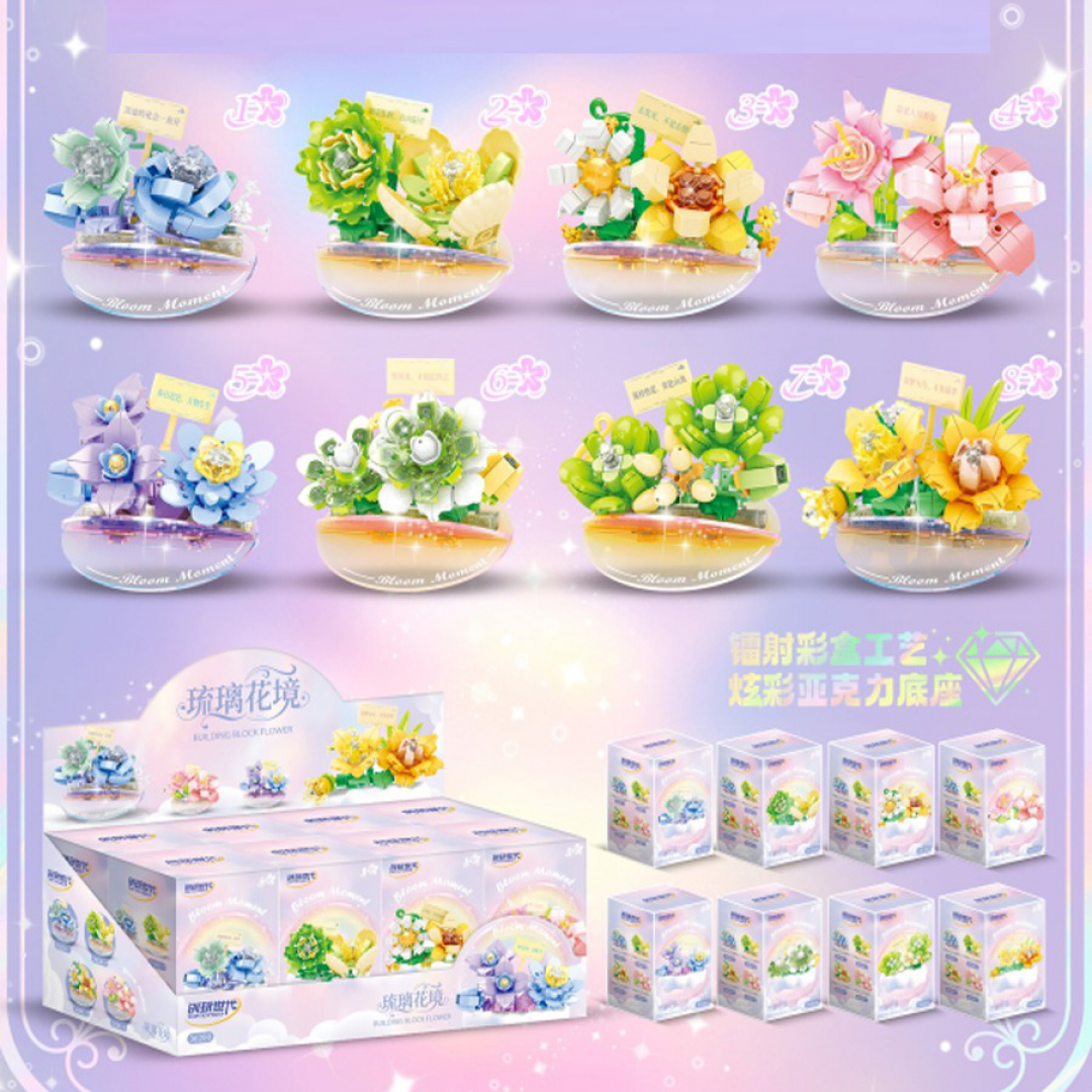 Конструктор «Волшебные цветы» представляет собой серию миниатюрных цветочных композиций, выполненных из сборных элементов. Каждая модель устанавливается на прозрачную подставку и оформлена в виде декоративной цветочной композиции.