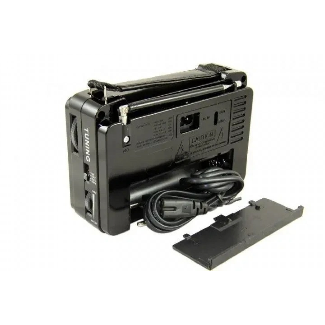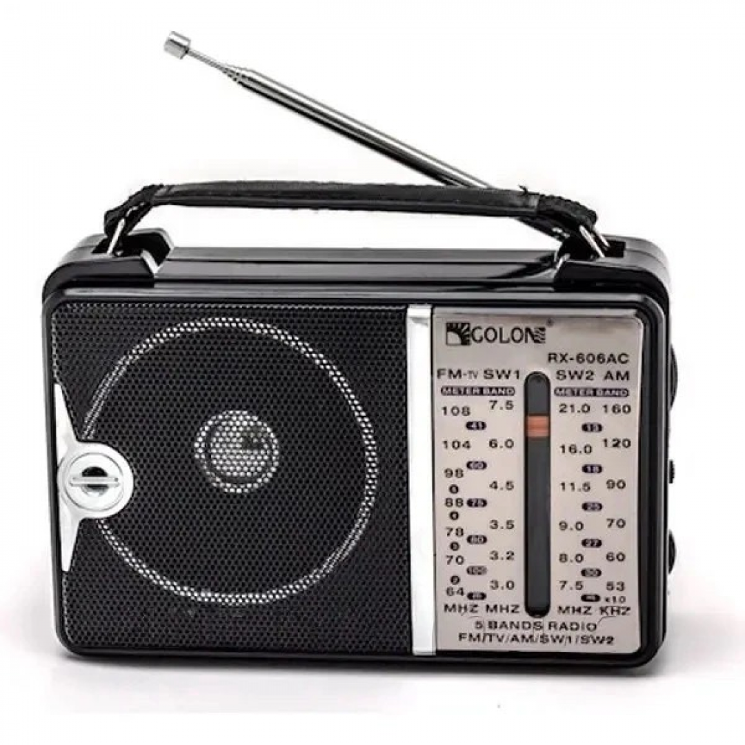 Портативный радиоприёмник с поддержкой нескольких диапазонов, предназначенный для приёма FM, AM и коротких волн. Может работать как от сети 220 В, так и от батареек, что делает его удобным для использования дома и вне помещений. Оснащён телескопической антенной для более стабильного приёма сигнала.