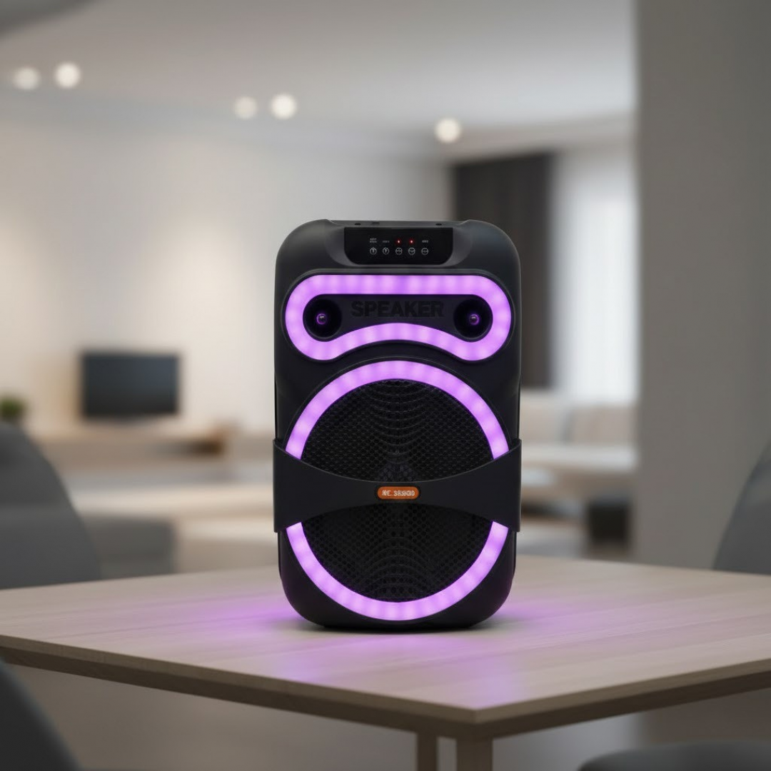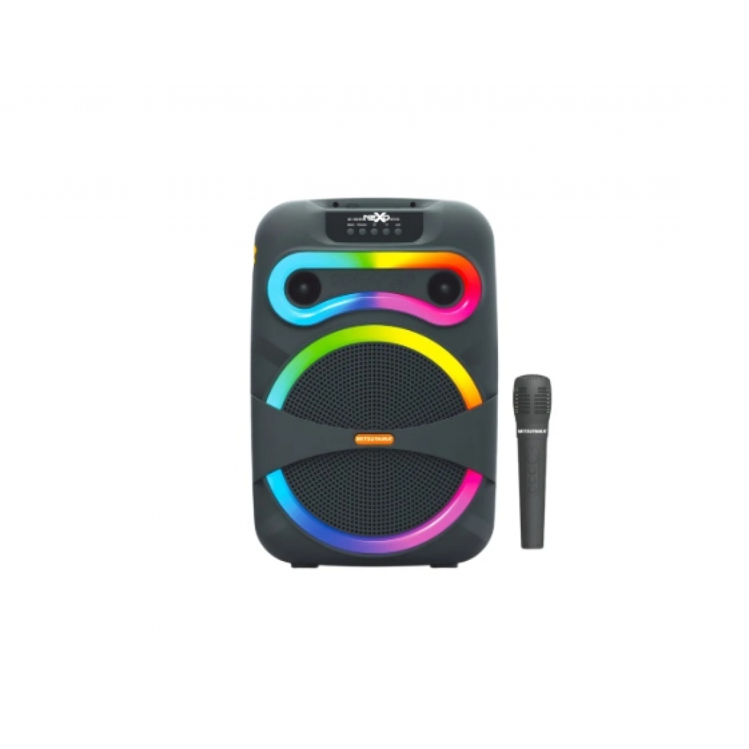 Модель подходит для использования в помещении и на открытом воздухе. Оснащена беспроводным микрофоном, что позволяет использовать устройство для караоке, презентаций и выступлений. Прочный корпус и ручка для переноски обеспечивают удобство транспортировки.
