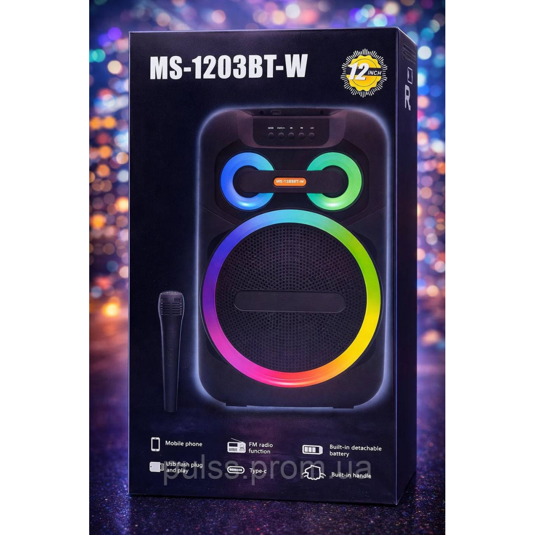 Портативная акустическая система MS-1201BT-W предназначена для воспроизведения музыки и проведения мероприятий. Оснащена встроенным аккумулятором, поддерживает подключение по Bluetooth, а также воспроизведение с USB-накопителей, SD-карт и через AUX. Встроенный FM-приёмник позволяет слушать радиостанции.