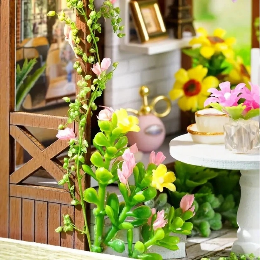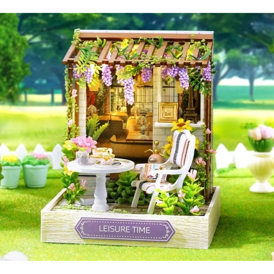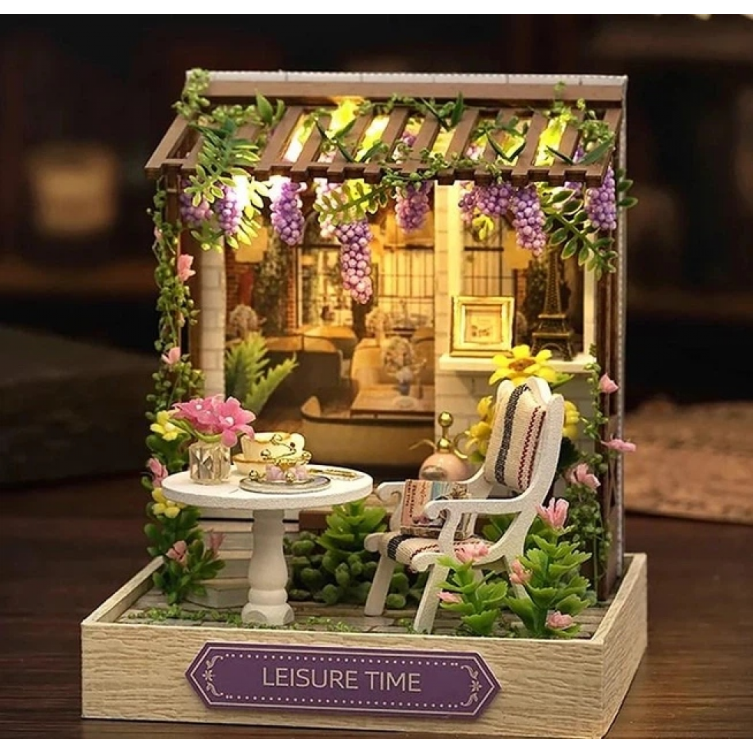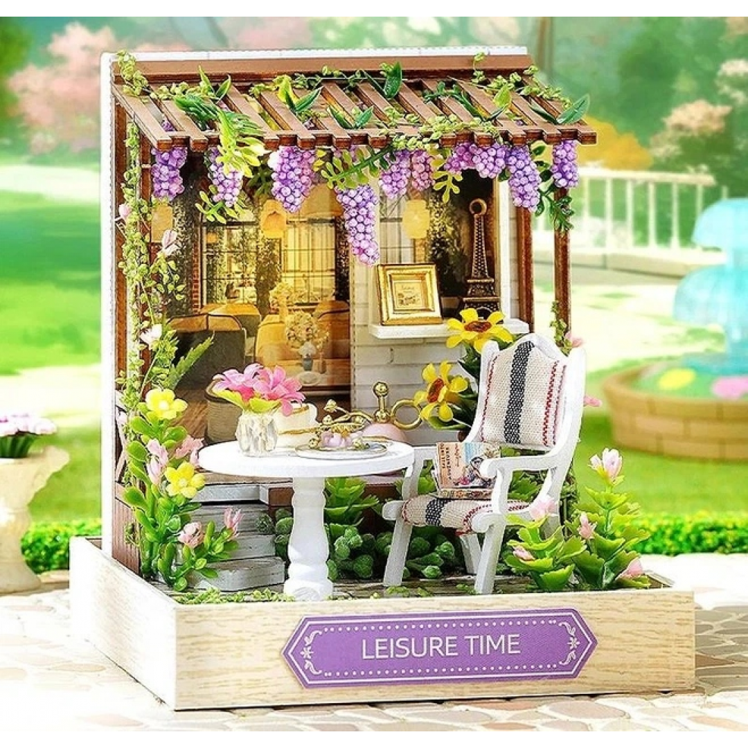 Румбокс «Уютный уголок» — интерьерный 3D-конструктор для самостоятельной сборки миниатюрной композиции в виде уютной террасы с декоративной мебелью и растениями. Модель выполнена с высокой детализацией: в набор входят элементы мебели, декоративные цветы, столик, кресло и другие интерьерные аксессуары, создающие атмосферу домашнего уюта.