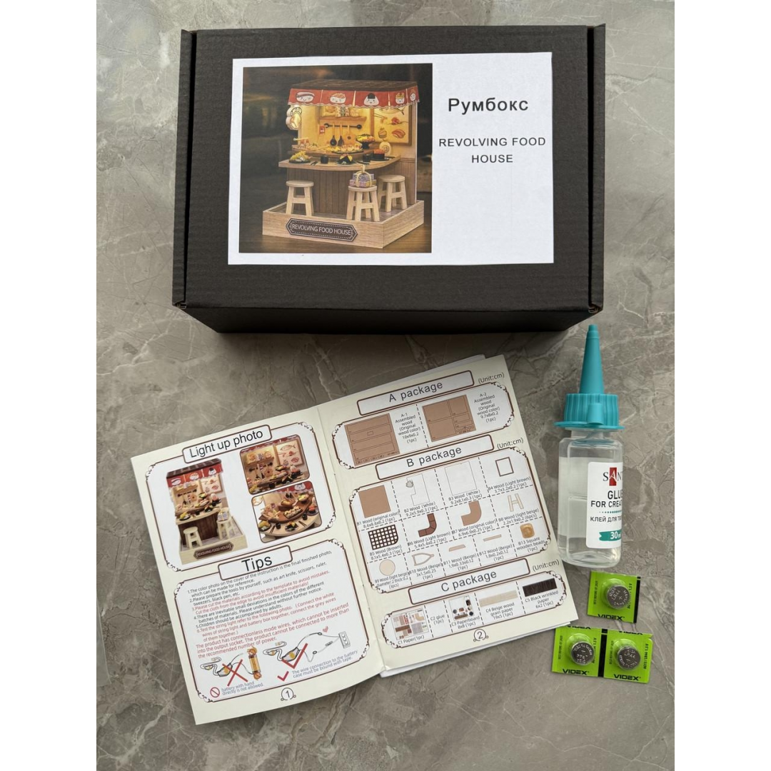 После сборки румбокс можно использовать как декоративный элемент интерьера. Встроенная LED-подсветка подчеркивает детали композиции, а прозрачный защитный купол помогает защитить миниатюру от пыли и сохранить её внешний вид.