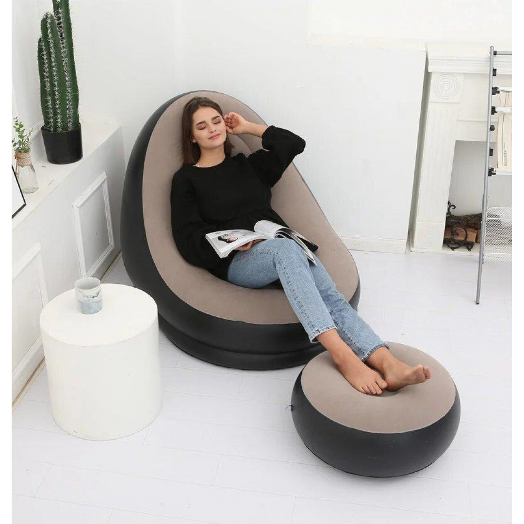 Кресло надувное велюровое с пуфиком, до 100 кг, 116×88×83 см / 55×55×29 см