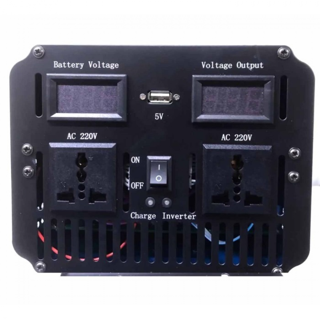 Корпус изготовлен из алюминия и оснащён двумя охлаждающими вентиляторами. На передней панели расположены кнопка включения, стандартная розетка, USB-порт 5 В и световые индикаторы. Инвертор подключается напрямую к аккумулятору с помощью зажимов и поддерживает функцию UPS с возможностью зарядки.