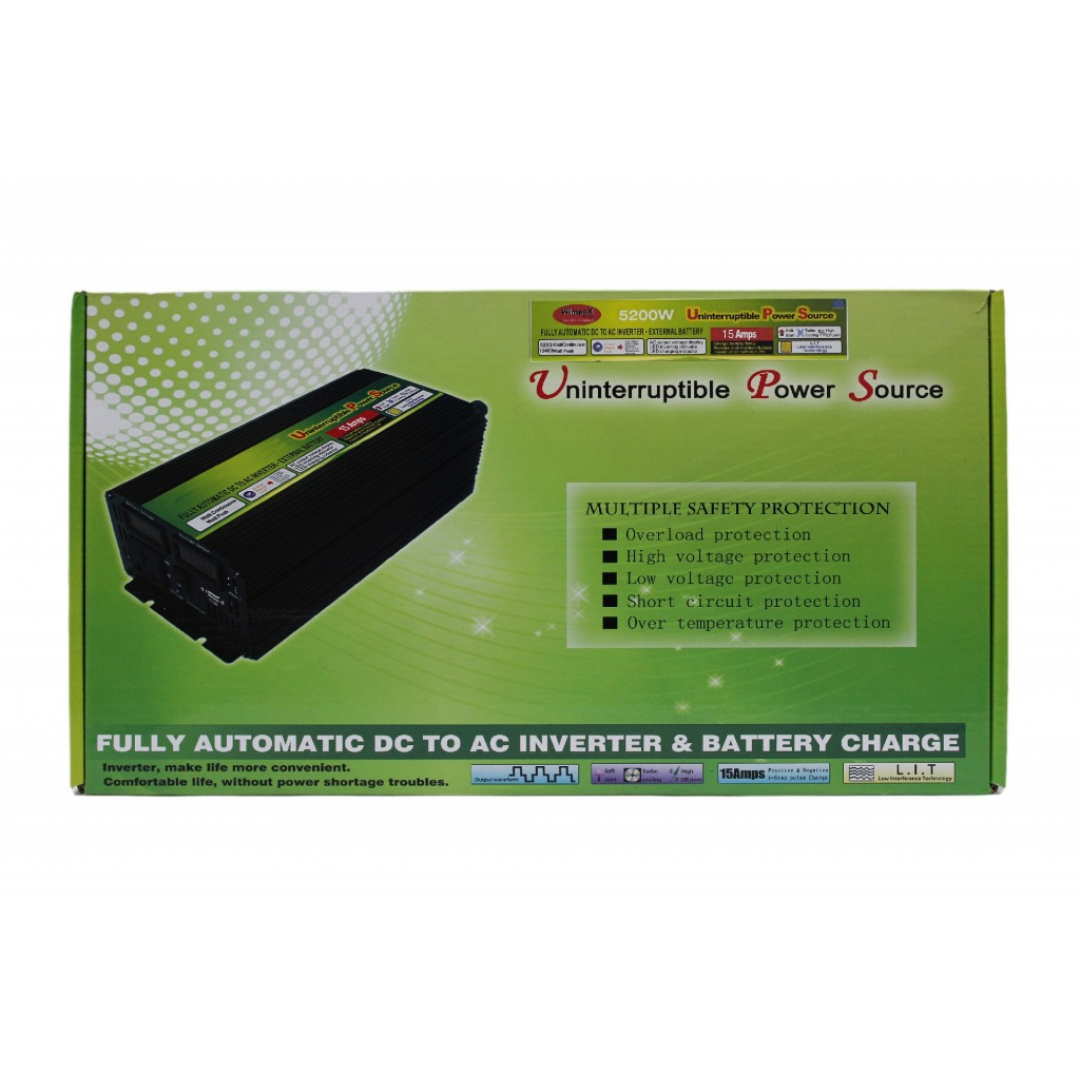 Преобразователь напряжения WX-5200W, 12В–220В, 5200W, с функцией зарядки 15А