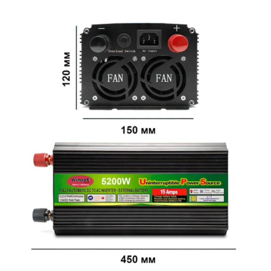Преобразователь напряжения WX-5200W, 12В–220В, 5200W, зарядка 15А
