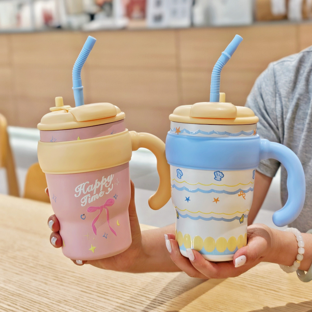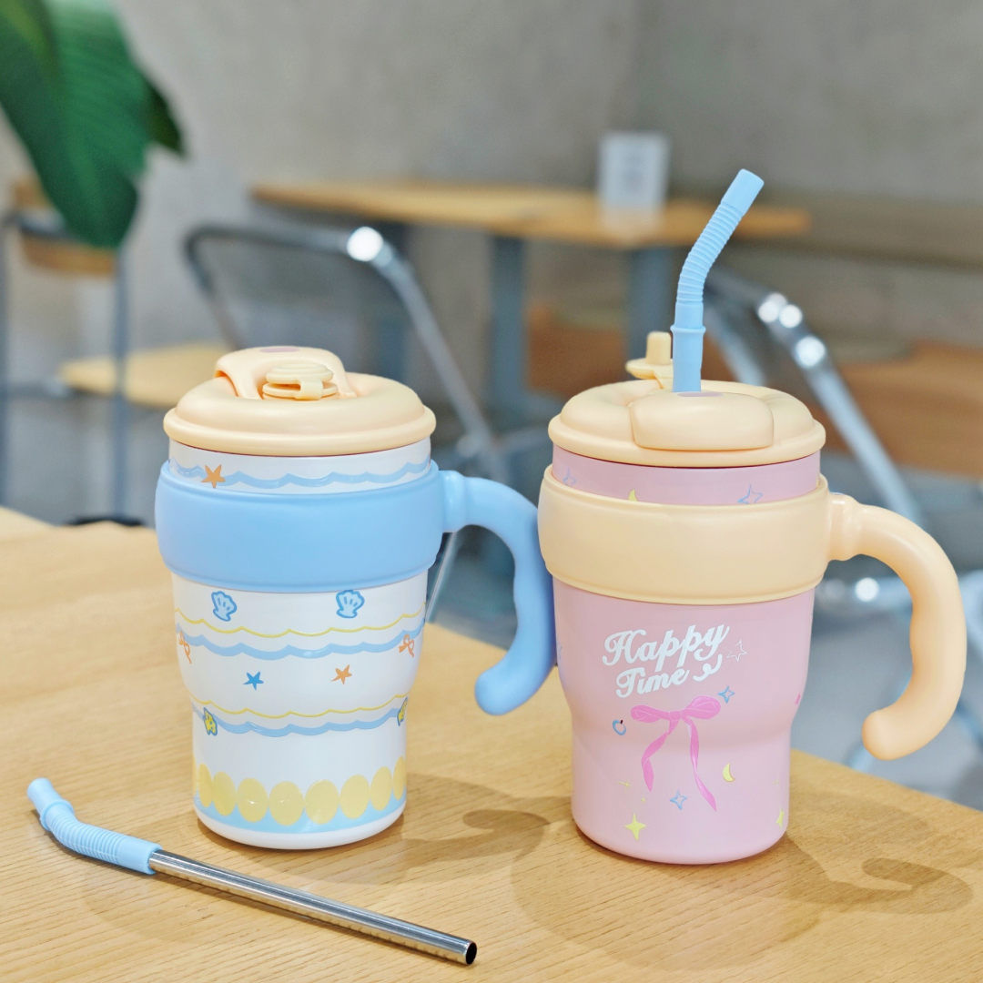 Термочашка с трубочкой FXD-7701, 680 мл, с ручкой
