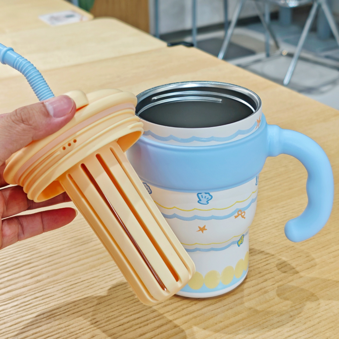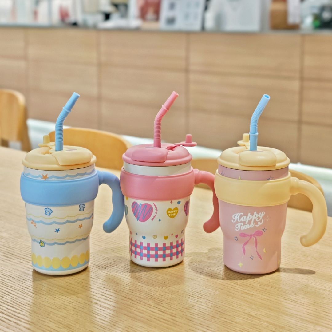 Подходит для холодных и горячих напитков. Используется дома, на работе, в автомобиле или на прогулках. Удобна для детей и взрослых благодаря ручке и форме крышки с трубочкой.