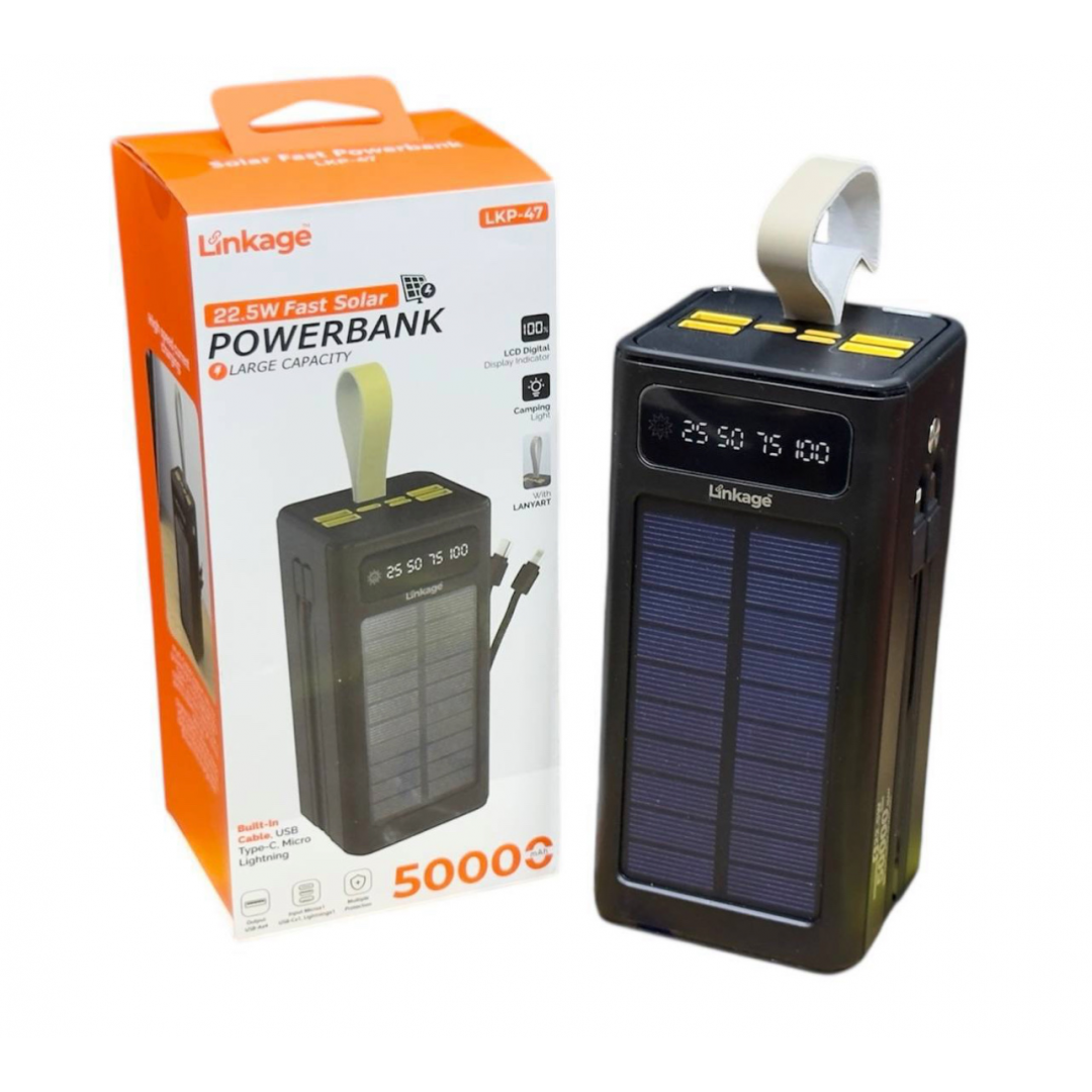 Портативный солнечный аккумулятор Linkage LKP-47, 50 000 мА·ч, 22,5 Вт, с кабелями и фонарем