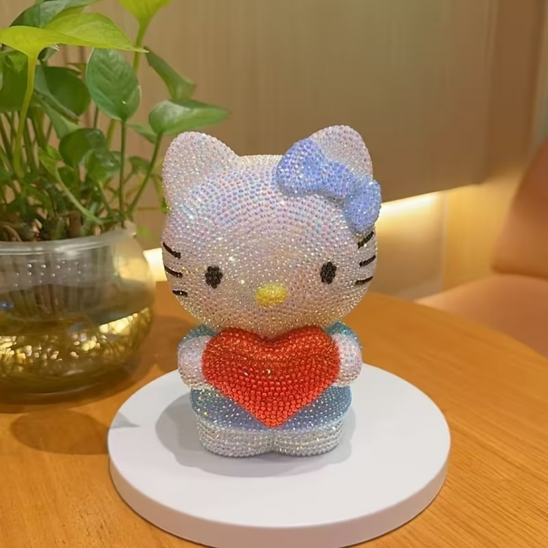 Набор алмазной мозаики модели 5-618 включает объёмную фигурку Hello Kitty, предназначенную для самостоятельного декорирования стразами. Фигурка выполнена в виде персонажа, держащего красное сердце. Поверхность изделия покрыта разметкой для выкладки декоративных элементов, что делает процесс удобным и аккуратным.