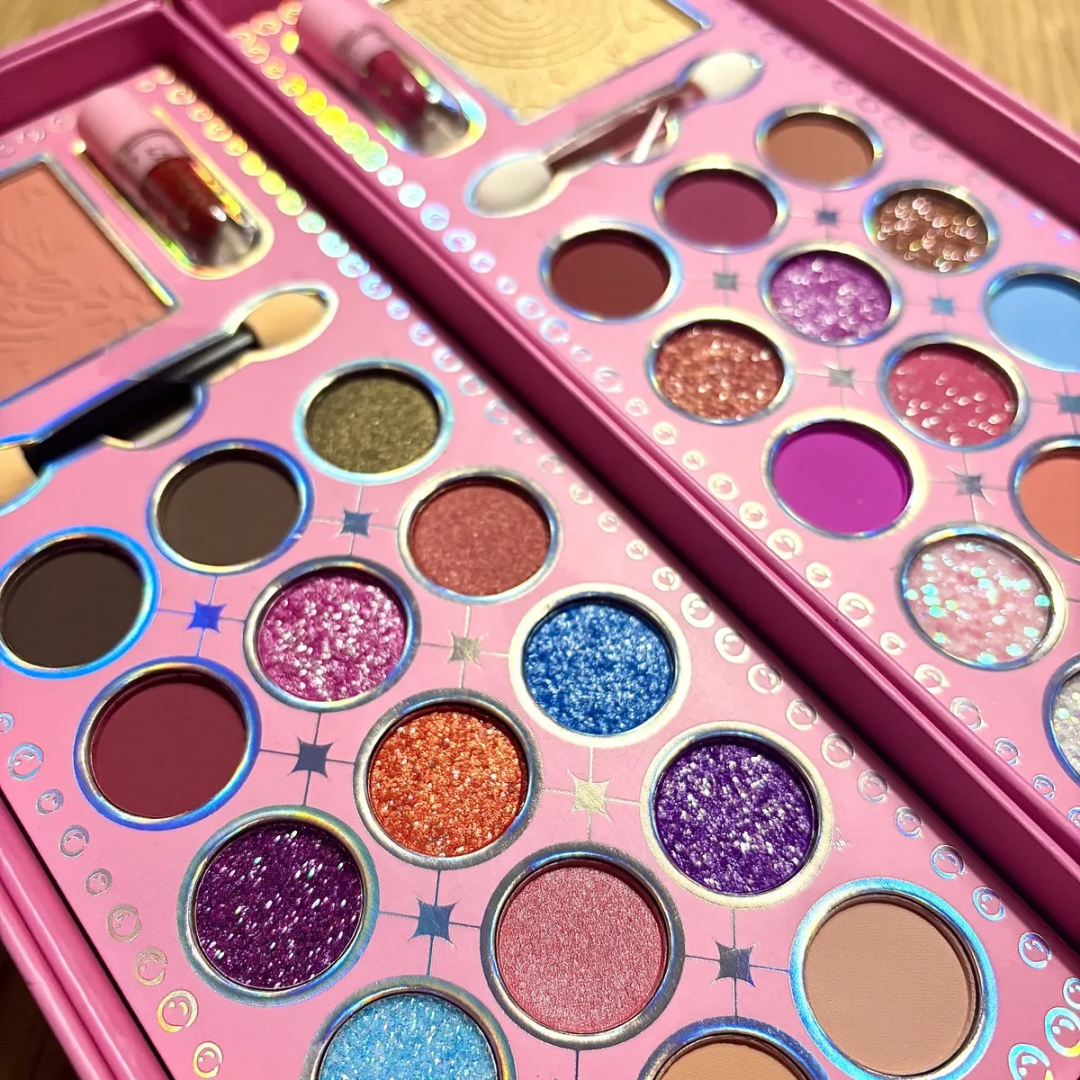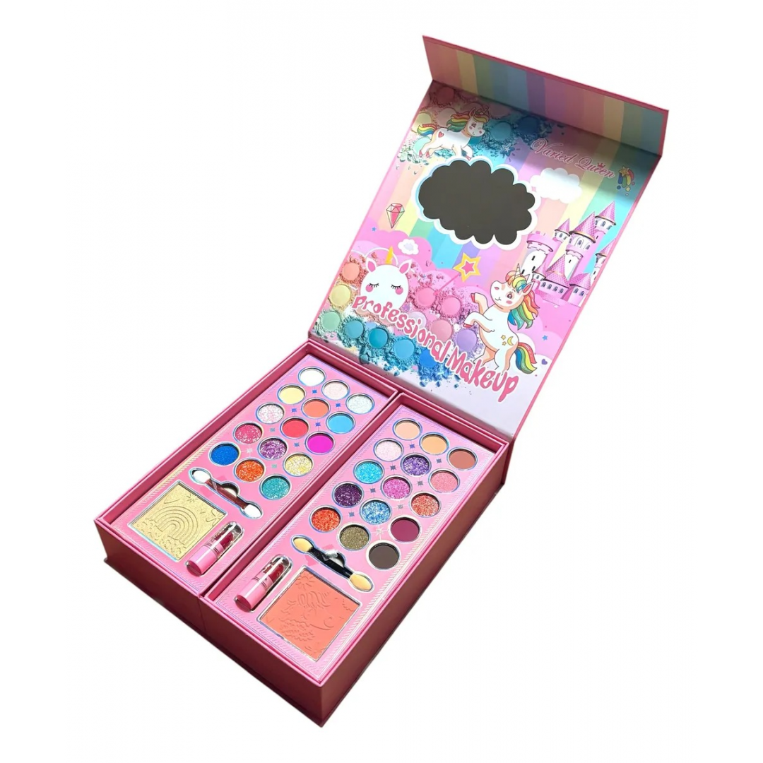 Палетка открывается в три секции, обеспечивая удобный доступ ко всем элементам набора. Встроенное зеркало позволяет ребёнку использовать косметику как в настоящем бьюти-наборе.