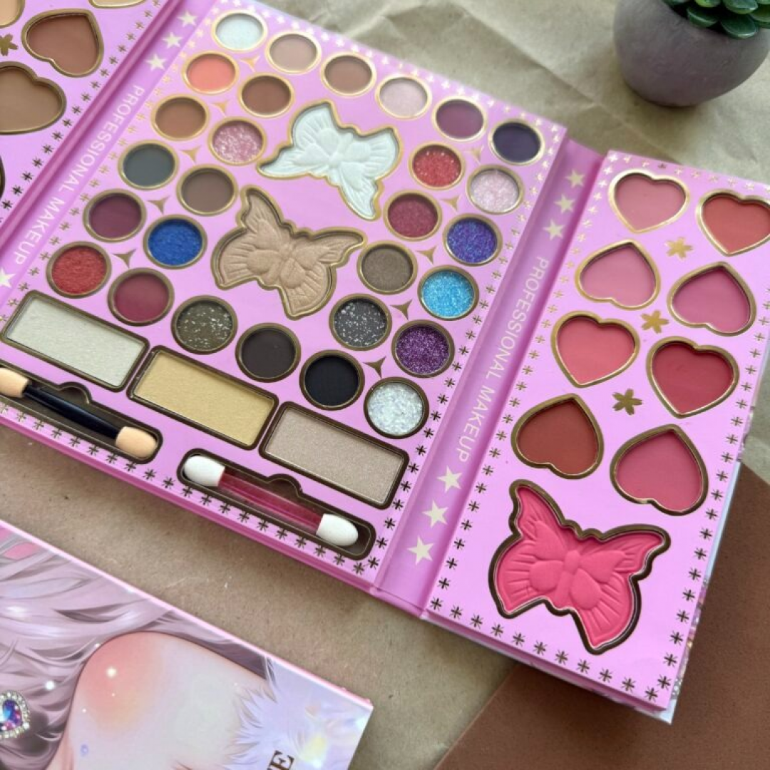 Косметический набор C1522 выполнен в ярком аниме-стиле и оформлен на обложке изображением девочки с котиком. Палетка включает разнообразные тени — матовые и глиттерные, а также хайлайтер и средства для контуринга. Набор предназначен для детских ролевых игр, помогает развивать фантазию и творческие навыки.