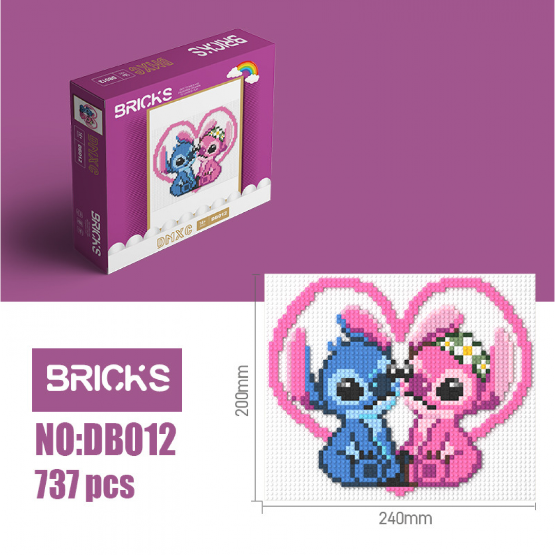 Набор мозаики BRICKS DB012 предназначен для создания изображения персонажей в стиле «Stitch» на пластиковой основе. Конструкция собирается из мини-деталей, размещаемых по схеме, что позволяет получить детализированную картинку с ровной поверхностью. Готовое панно можно использовать как декоративный элемент в комнате или как подарок.