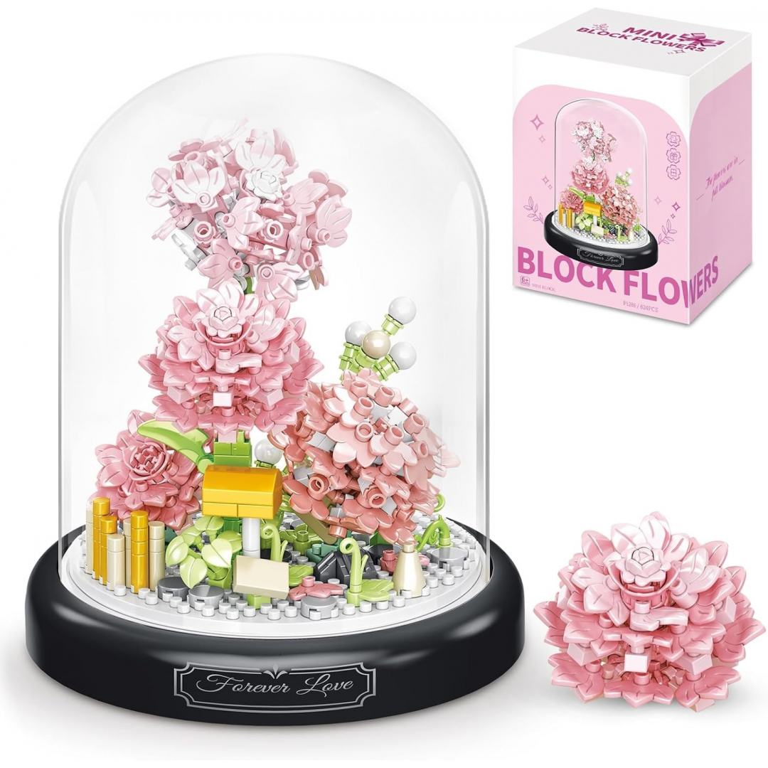 Конструктор представляет собой декоративную цветочную композицию с гвоздиками, выполненную из мелких пластиковых деталей и размещённую под прозрачной колбой. Модель предназначена для самостоятельной сборки с последующим использованием в качестве интерьерного украшения.