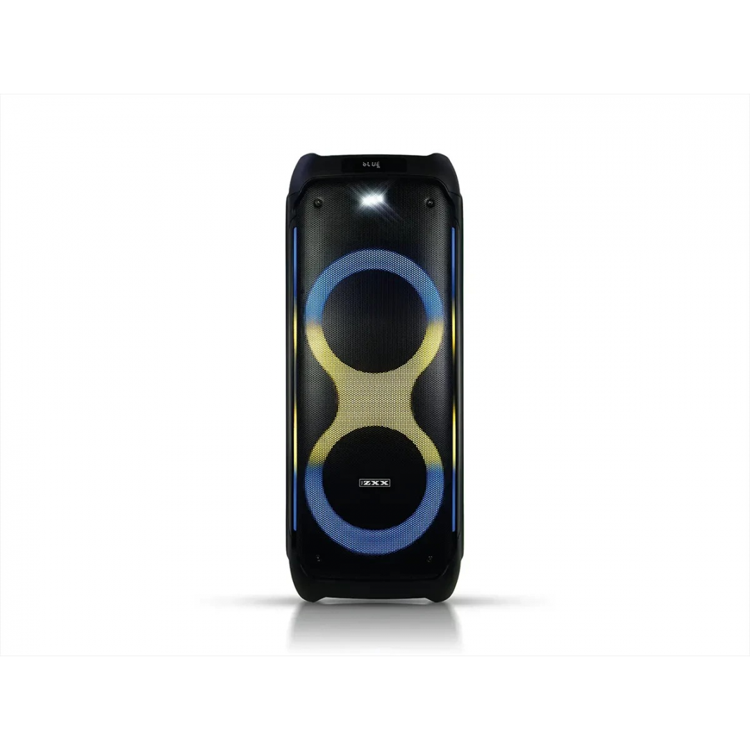 Портативная акустическая система с аккумуляторным питанием, предназначенная для воспроизведения музыки и голосового сопровождения. Оснащена двумя динамиками диаметром 10 дюймов и встроенной LED-подсветкой на передней панели. Поддерживает беспроводное подключение и воспроизведение аудиофайлов с внешних носителей.