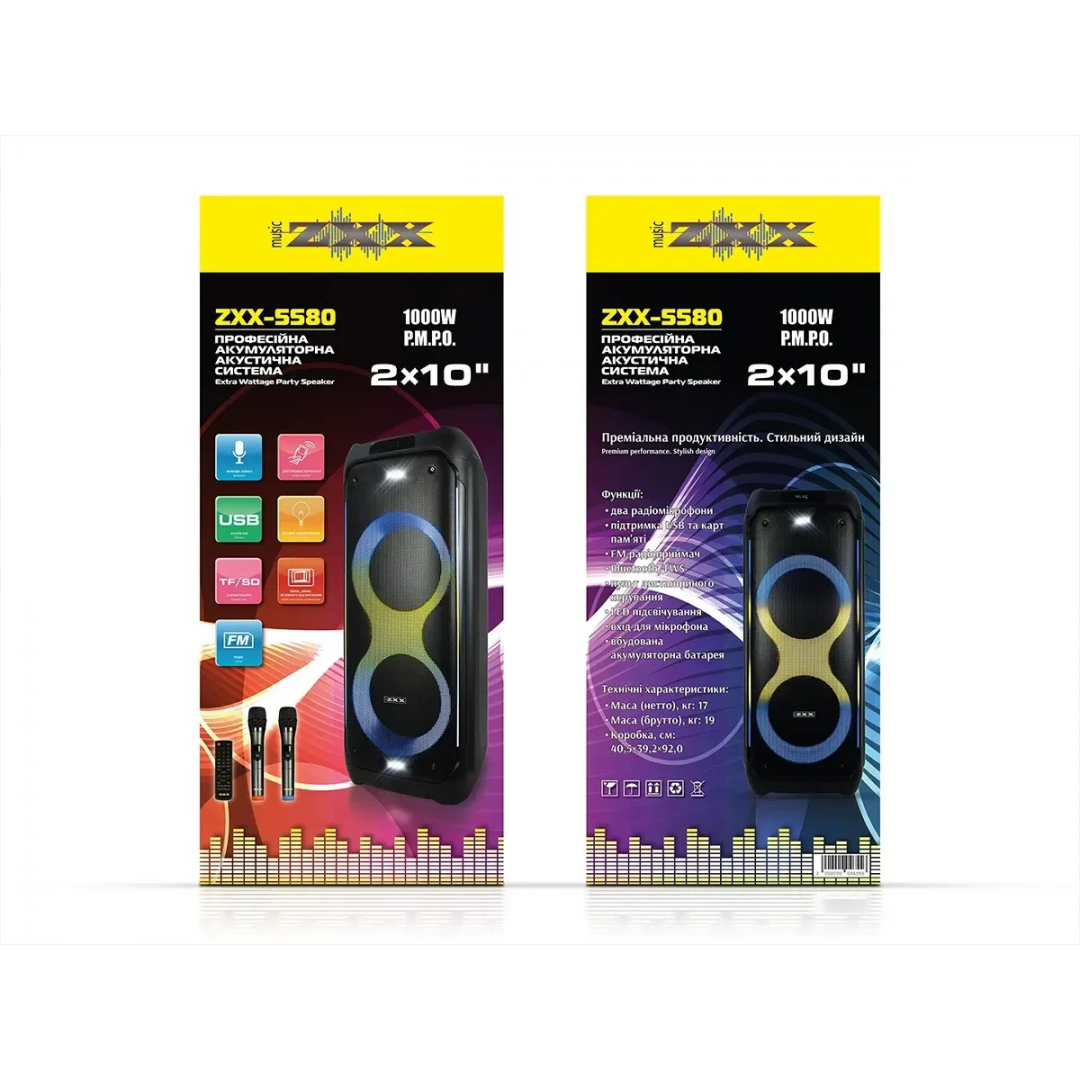 Портативная аккумуляторная акустическая система ZXX-5580, 2×10", 2 микрофона